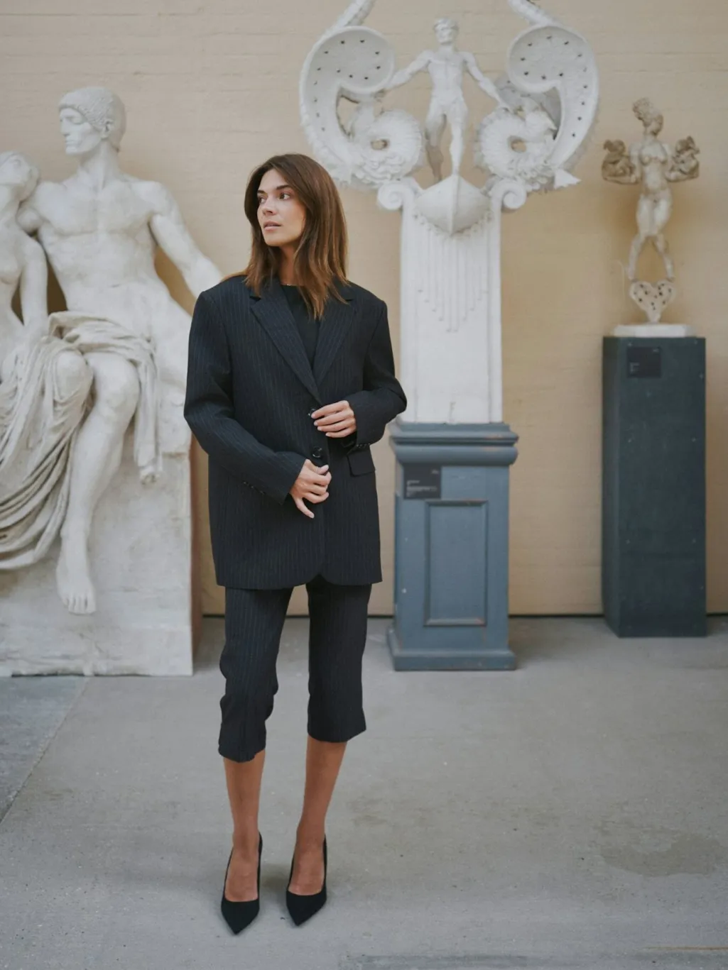 - Modellen er 176 cm høj og bærer størrelse 36