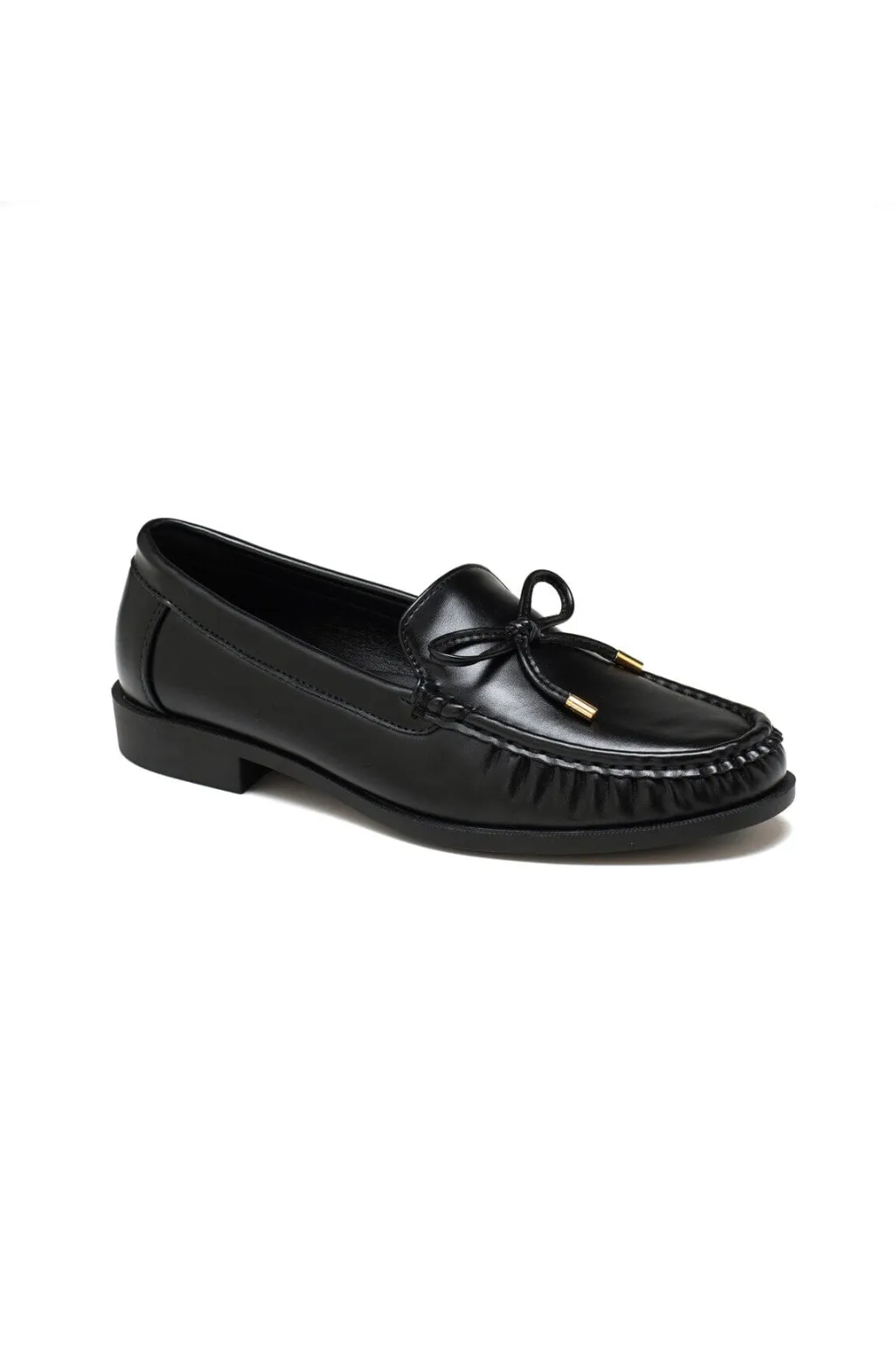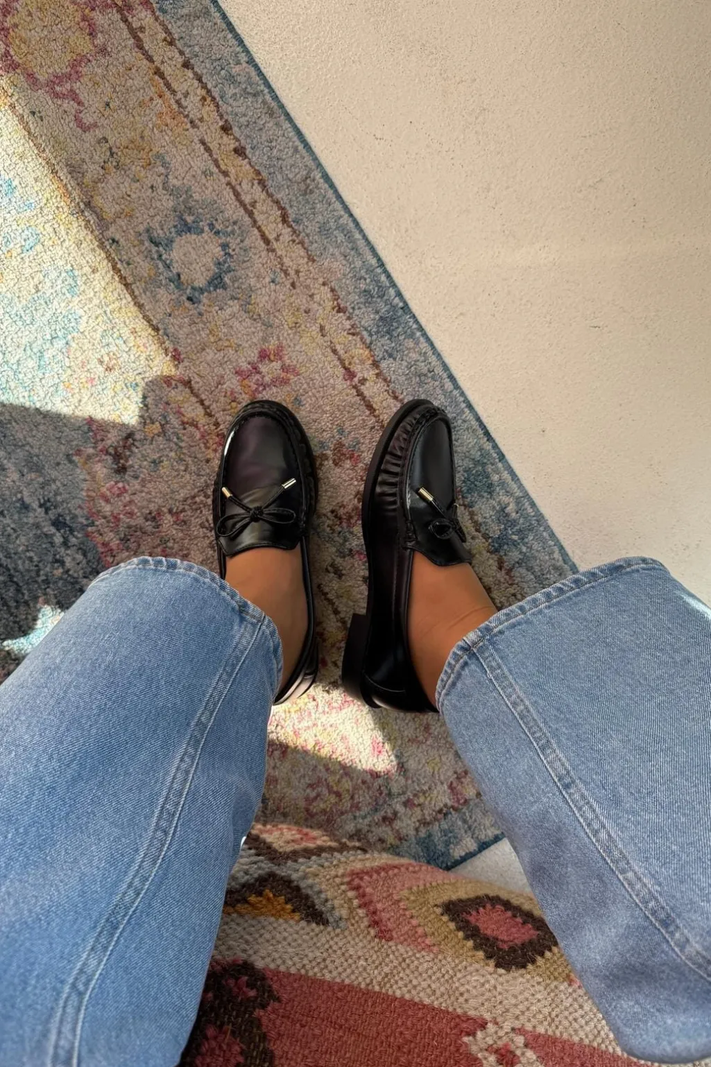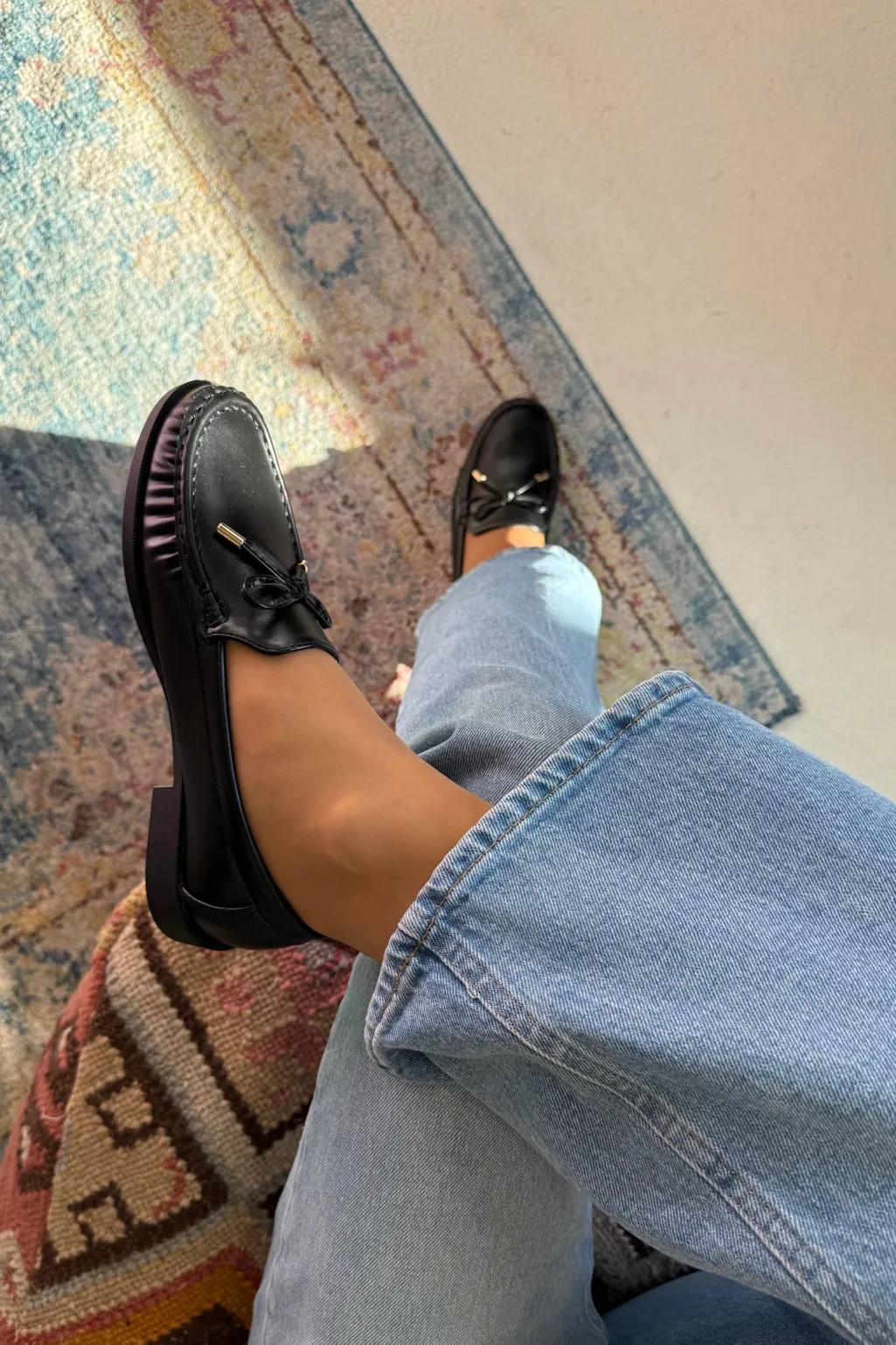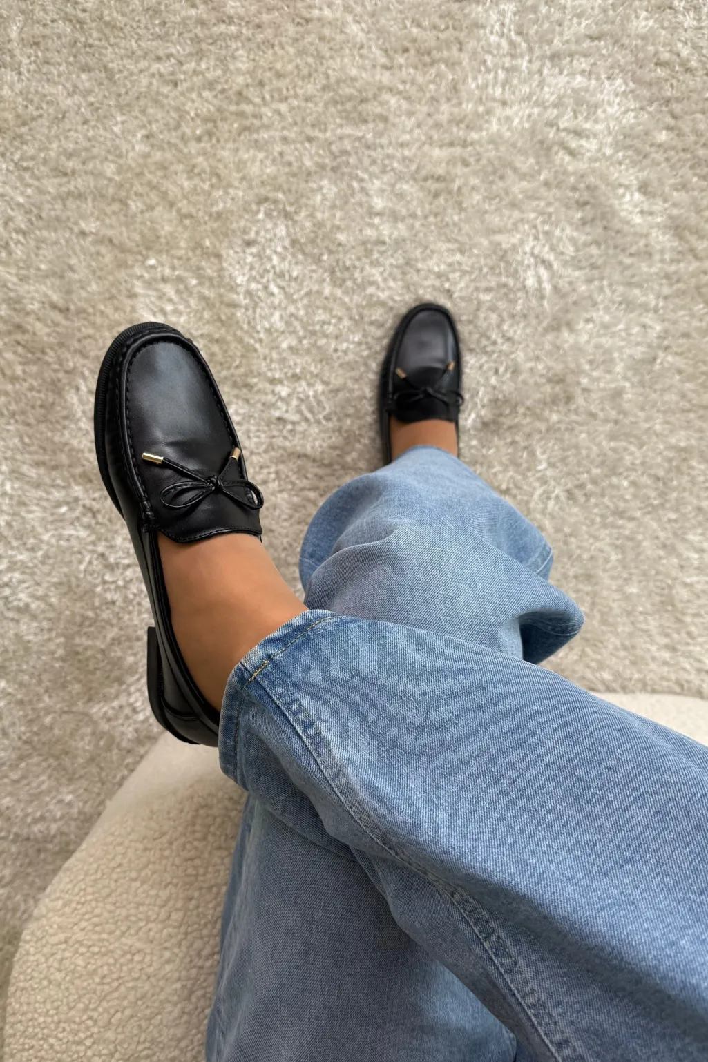 Sorte loafers fra Bloom med rund tå og rent design uden lukning. Skoene har en lav hæl og er lavet i syntetisk materiale med glat overflade.