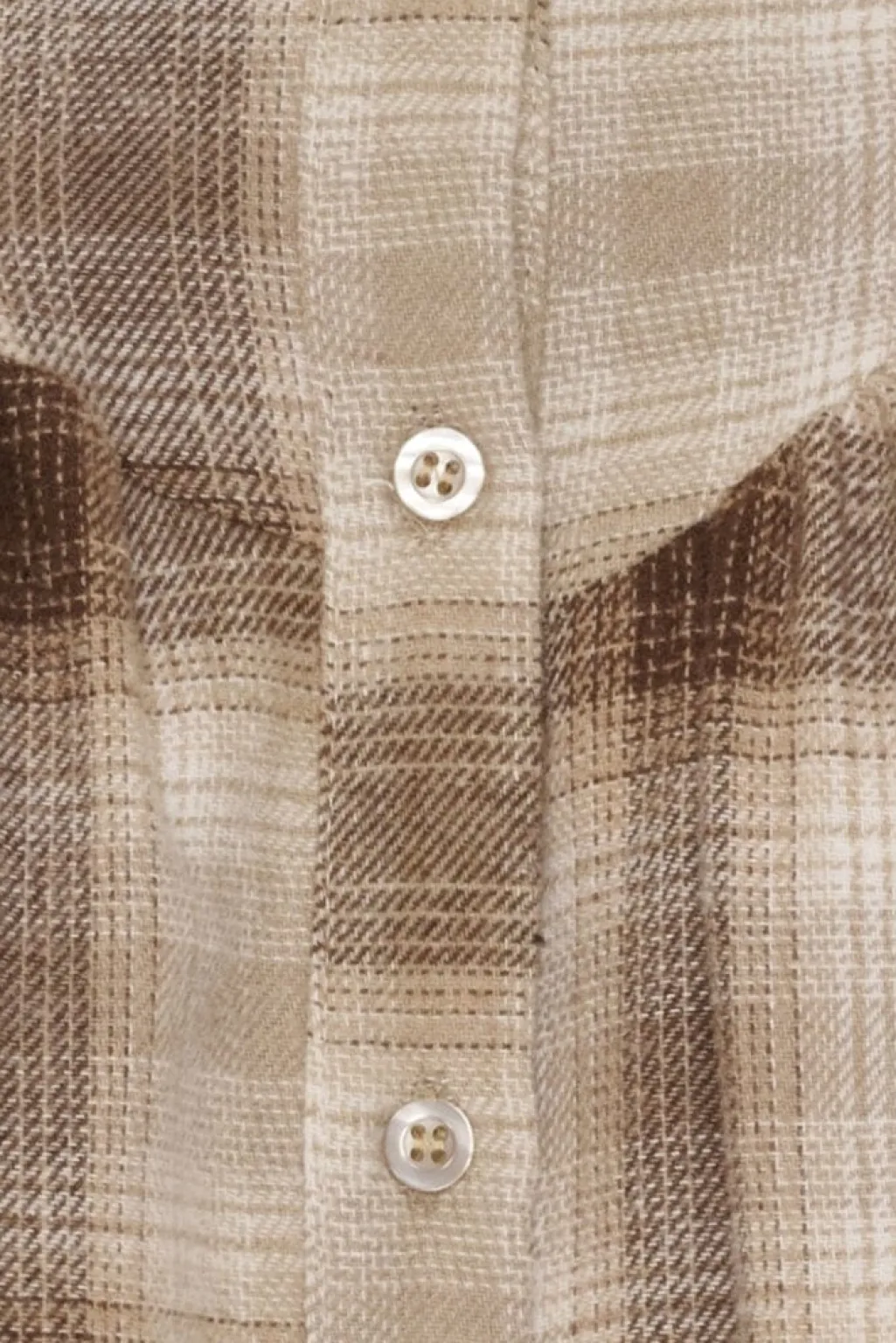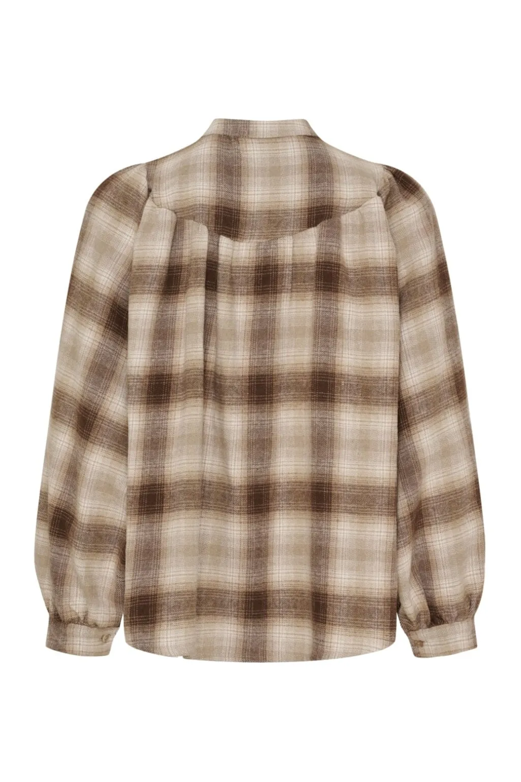 Beige skjorte fra Marta Du Chateau med et ternet mønster. Skjorten har en løs pasform og lange ærmer med flæsedetaljer ved manchetterne.