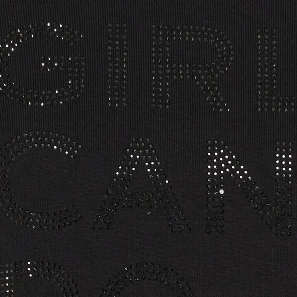 Sort T-shirt fra Marta Du Chateau med teksten GIRLS CAN DO ANYTHING i små, skinnende pailletter på fronten. T-shirten passer til både afslappet hverdagsbrug og hjemmebrug.