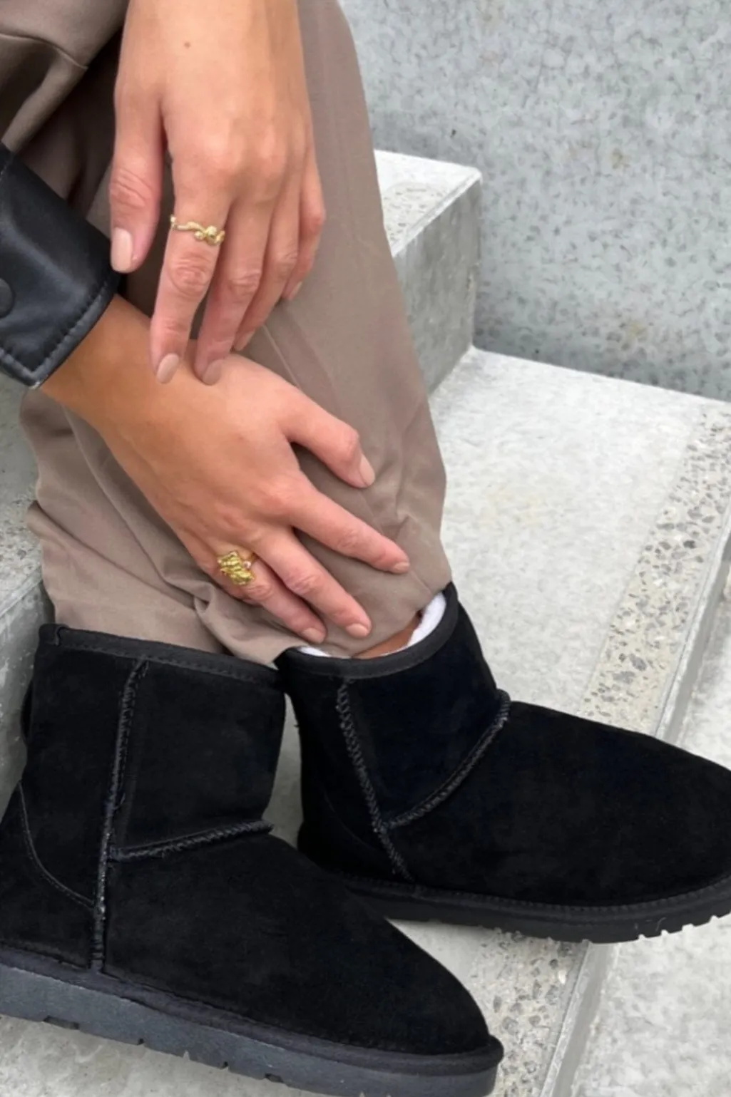 Sorte ankelstøvler fra Copenhagen Shoes i ruskind og læder. Støvlerne har en afrundet tå og en flad sål, der giver et enkelt og klassisk udtryk.