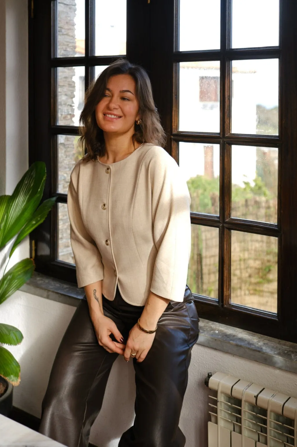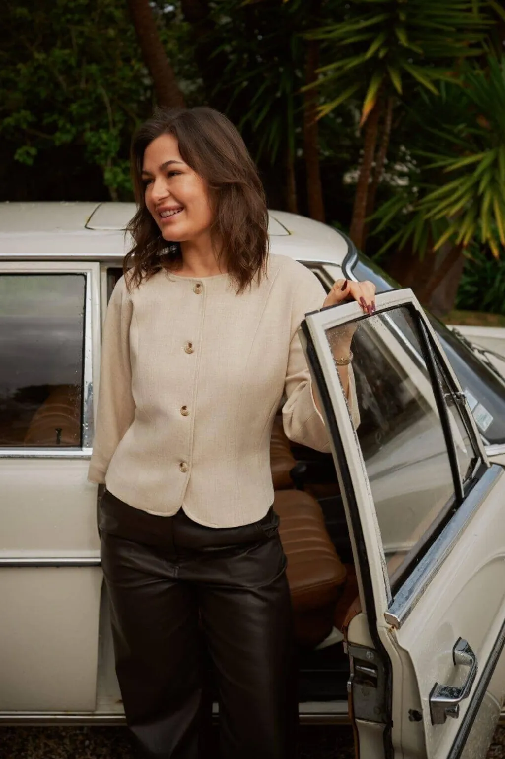 - Modellen er 176 cm høj og bærer størrelse 36