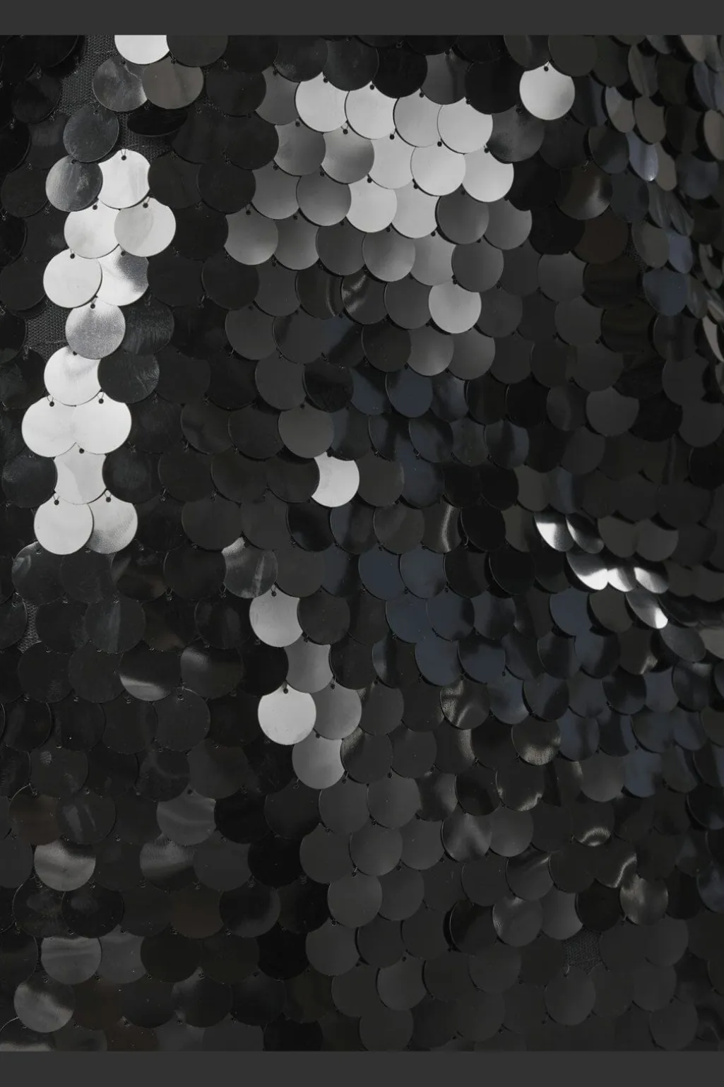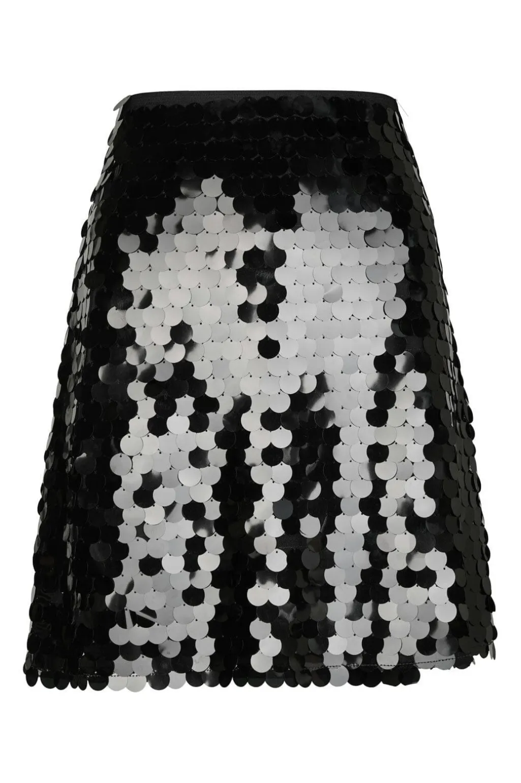 Sort nederdel fra Neo Noir med store pailletter i sort og sølv. Den korte model har en regular waist og lynlås lukning. Nederdelen er designet til festlige anledninger.