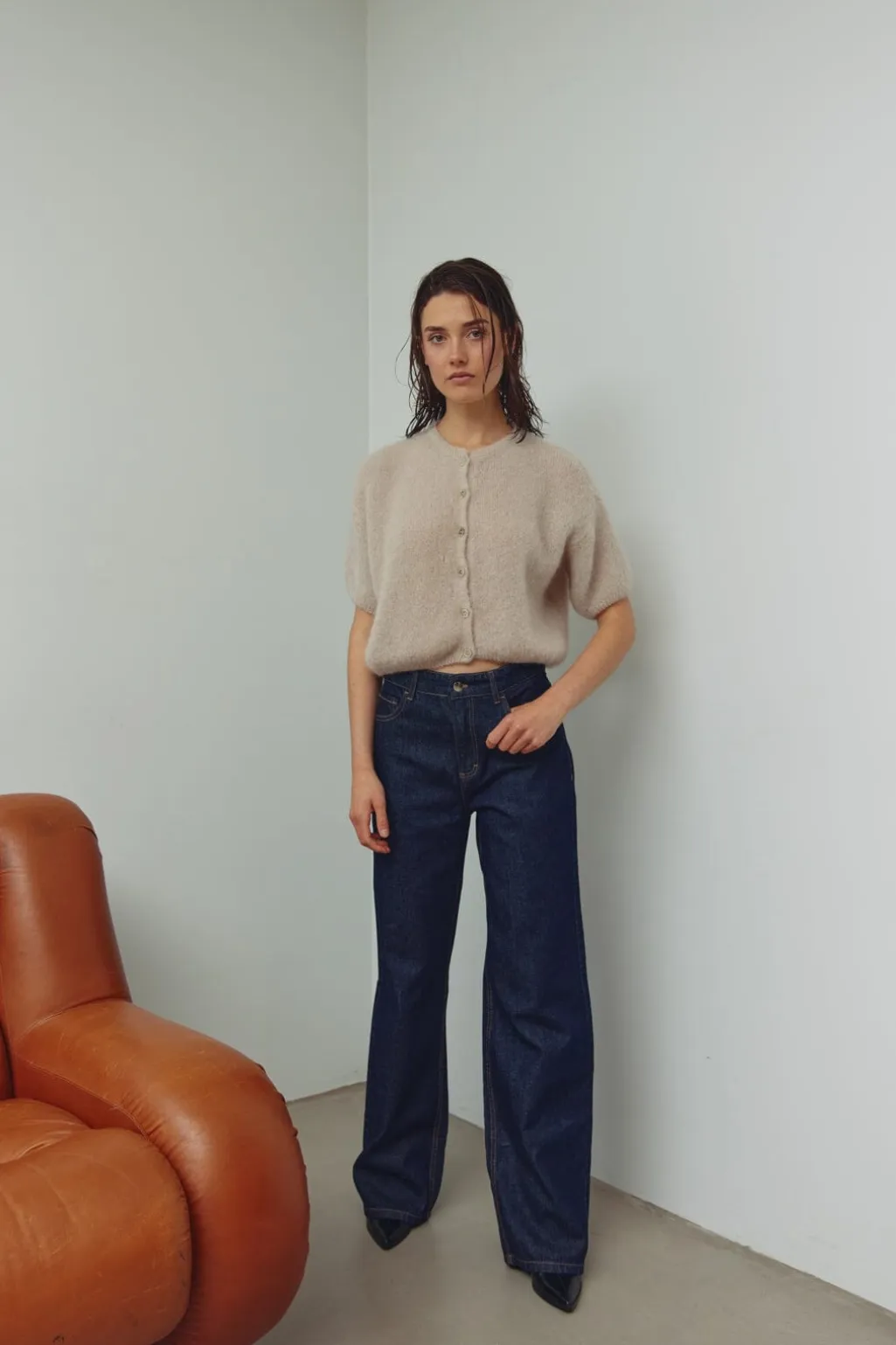 Mørkeblå jeans fra Noella i Rinse Wash. De har en løs pasform med brede ben og mellemhøj talje. Knap- og lynlåslukning foran giver nem af- og påtagning.