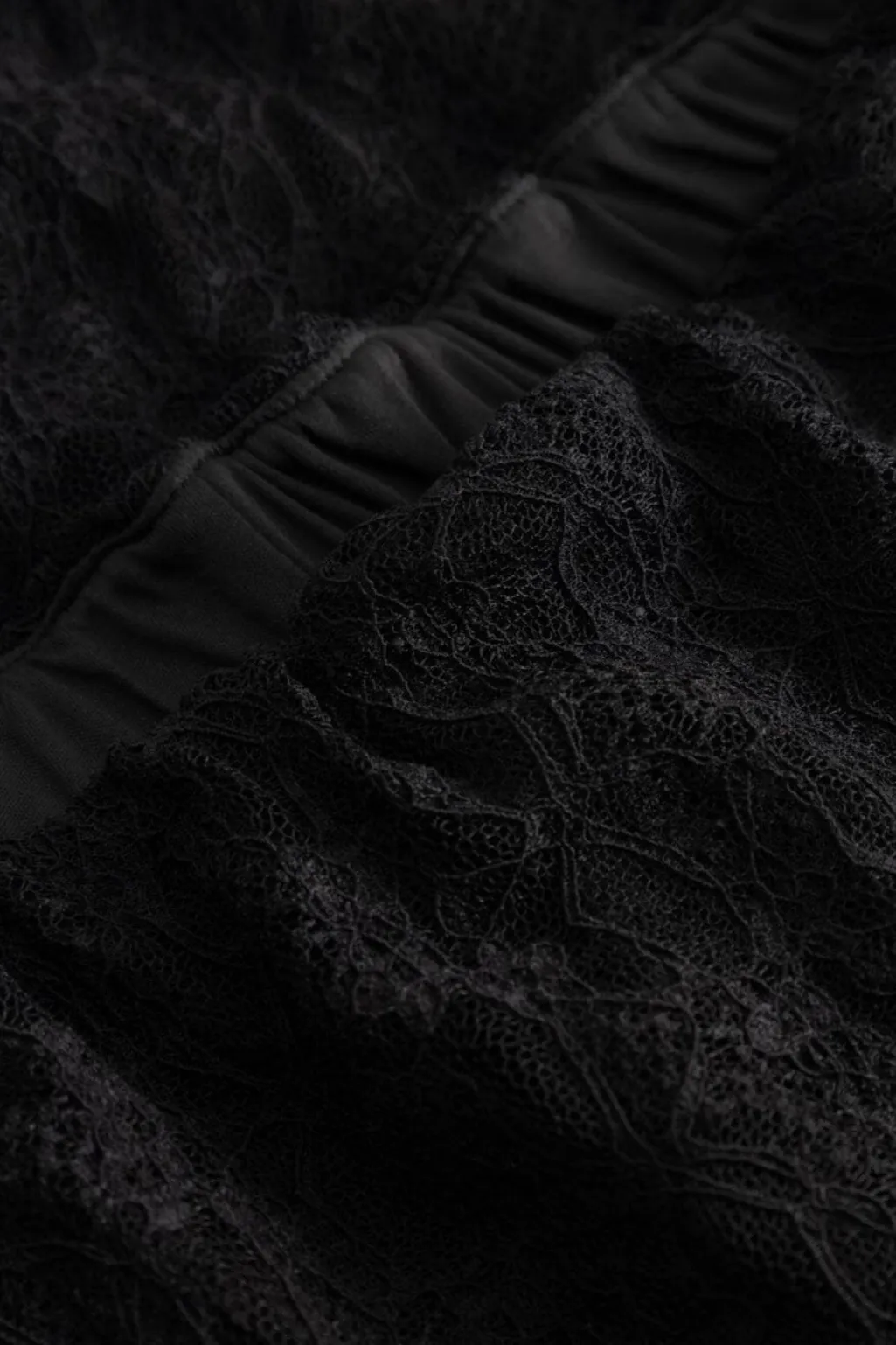 N-Lorena Pants er et par lange, vidtgående bukser i et indviklet blondemønster. Bukserne har en behagelig shortsforing og en foldet linning med justerbare snørebånd i blonde for en rynket effekt.