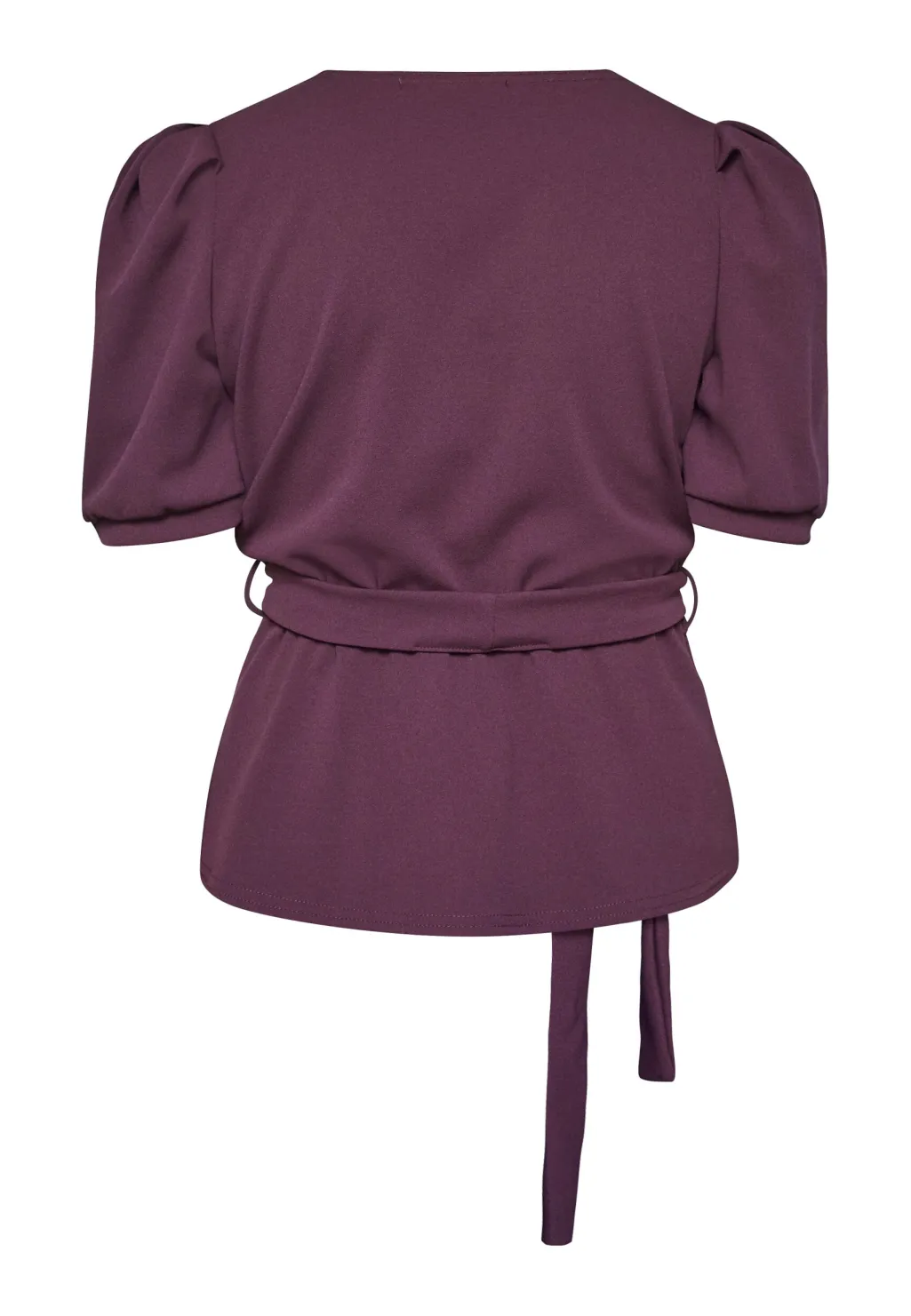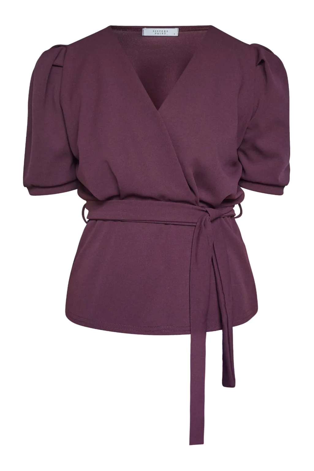 Top fra Sisters Point i dyb bordeaux. Toppen har en V-hals, korte pufærmer og et bindebånd i taljen.