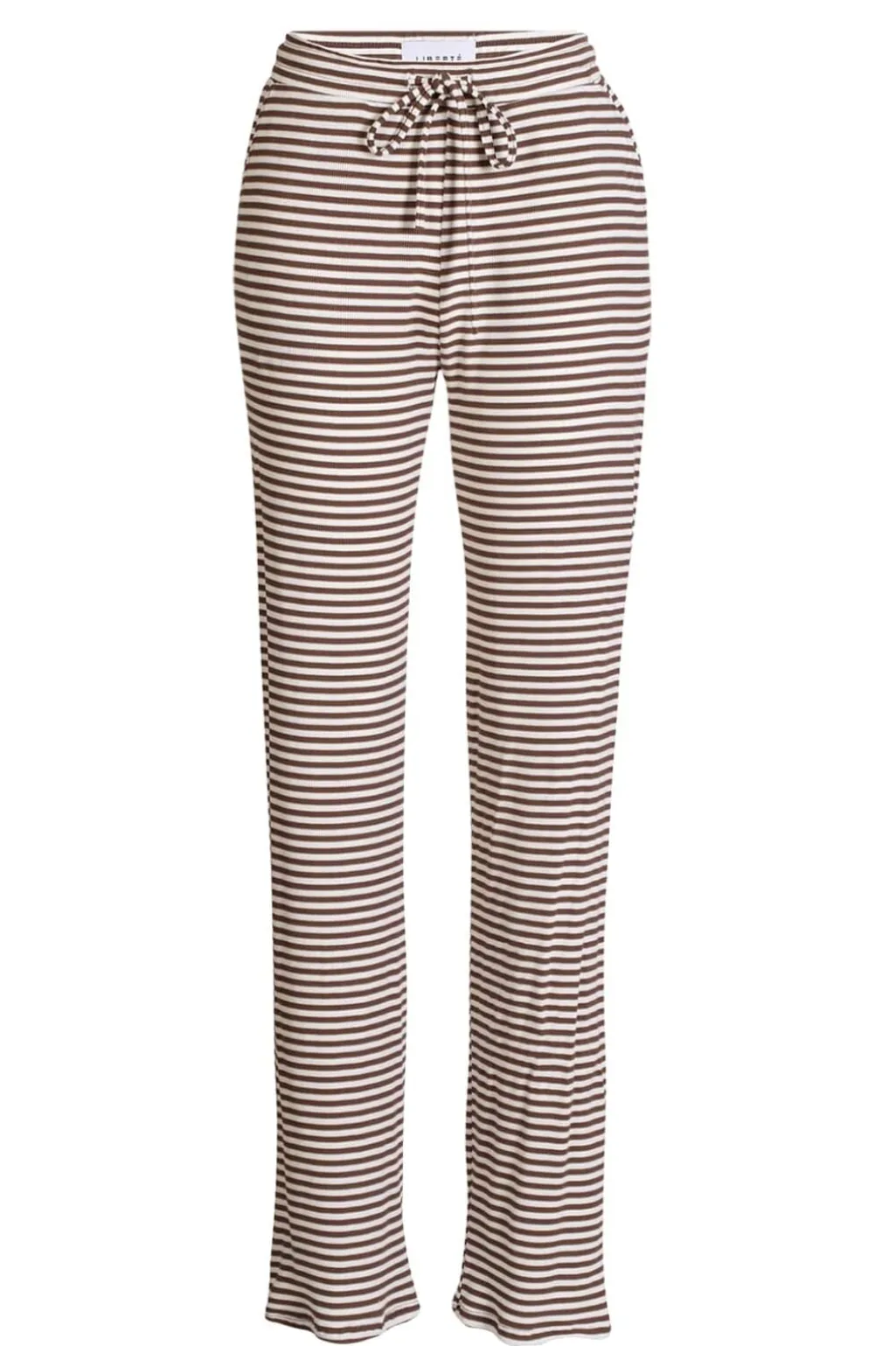 Stribede bukser fra Liberte i brun og creme. Den bløde viskose med stretch giver komfort ved brug, mens snøre og elastik i taljen sikrer god tilpasning.