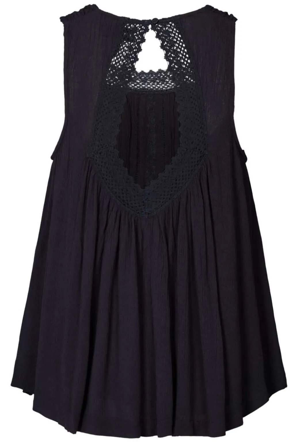 Flot top med firkantet halsudskæring, tykke stropper og en smuk lille åben detalje på ryggen. Den har en almindelig pasform foroven, udvider sig til en løs pasform forneden og er længere på ryggen for at skabe smukke lag.