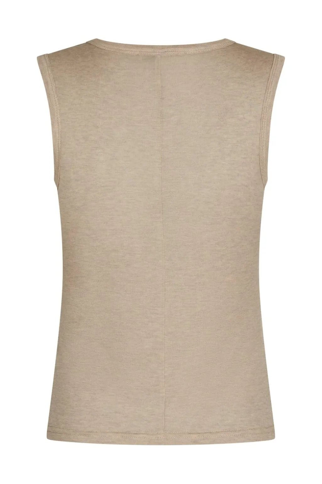 Ærmeløs ribtop fra Neo Noir i beige melange. Toppen er fremstillet af en blød blanding af lyocell og uld med fin ribstruktur og har en tætsiddende pasform.