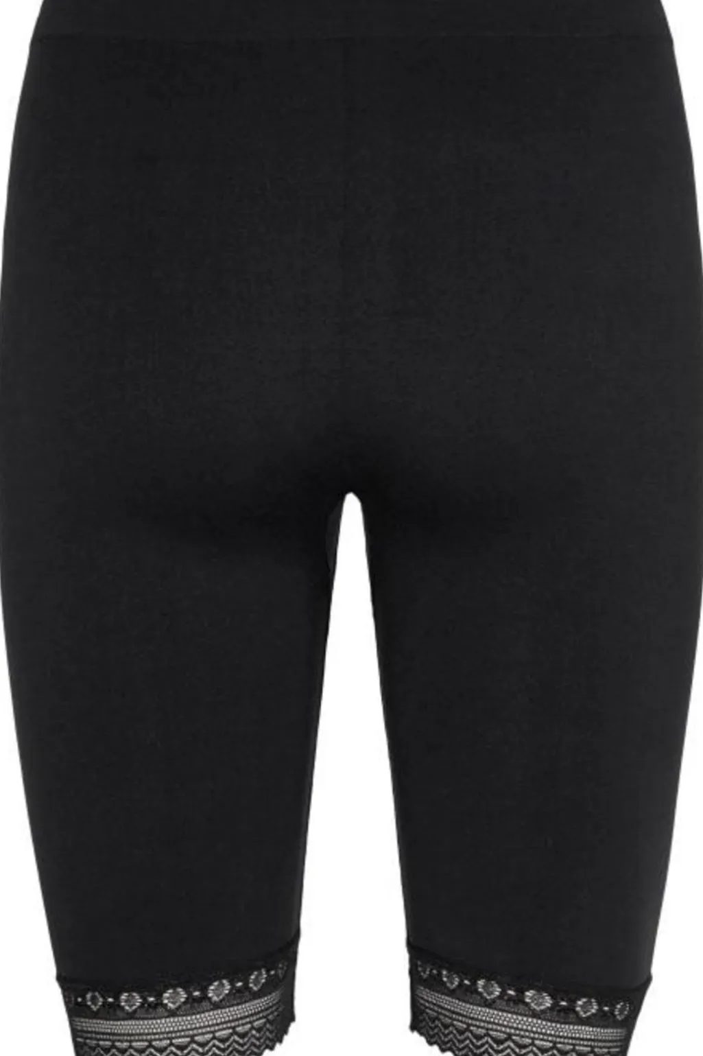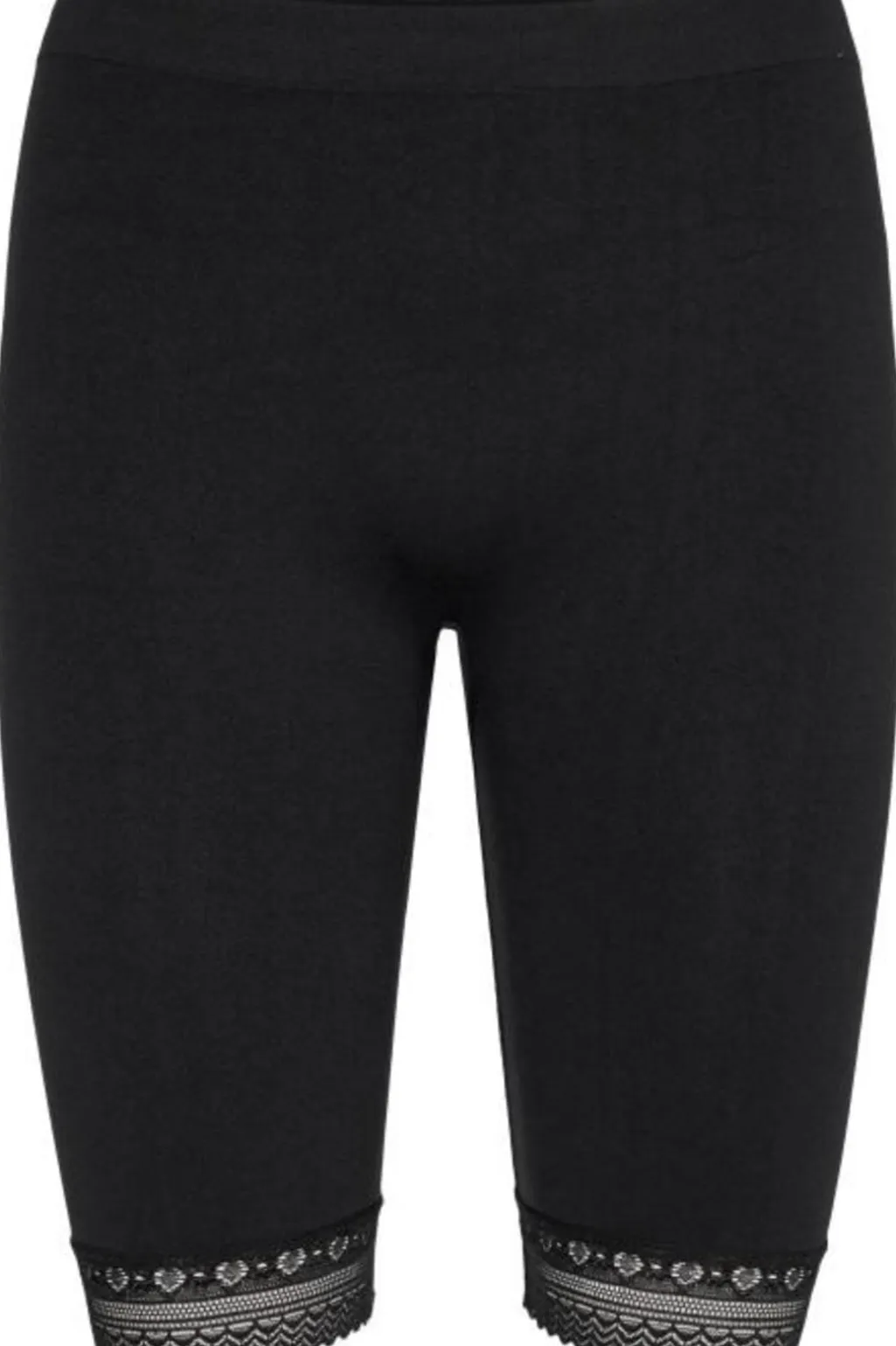Sorte shorts fra Liberte med blondekant ved benene. Shortsene har en tætsiddende pasform og en elastisk talje, der giver god bevægelsesfrihed.