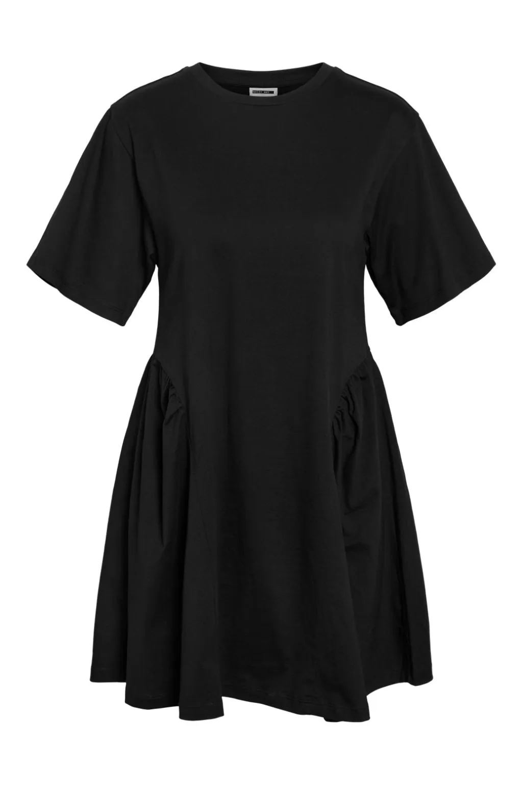 Sort kort kjole fra Noisy May, lavet af bomuld. Kjolen har flæsedetaljer ved nederdelen, korte ærmer og en rund halsudskæring.