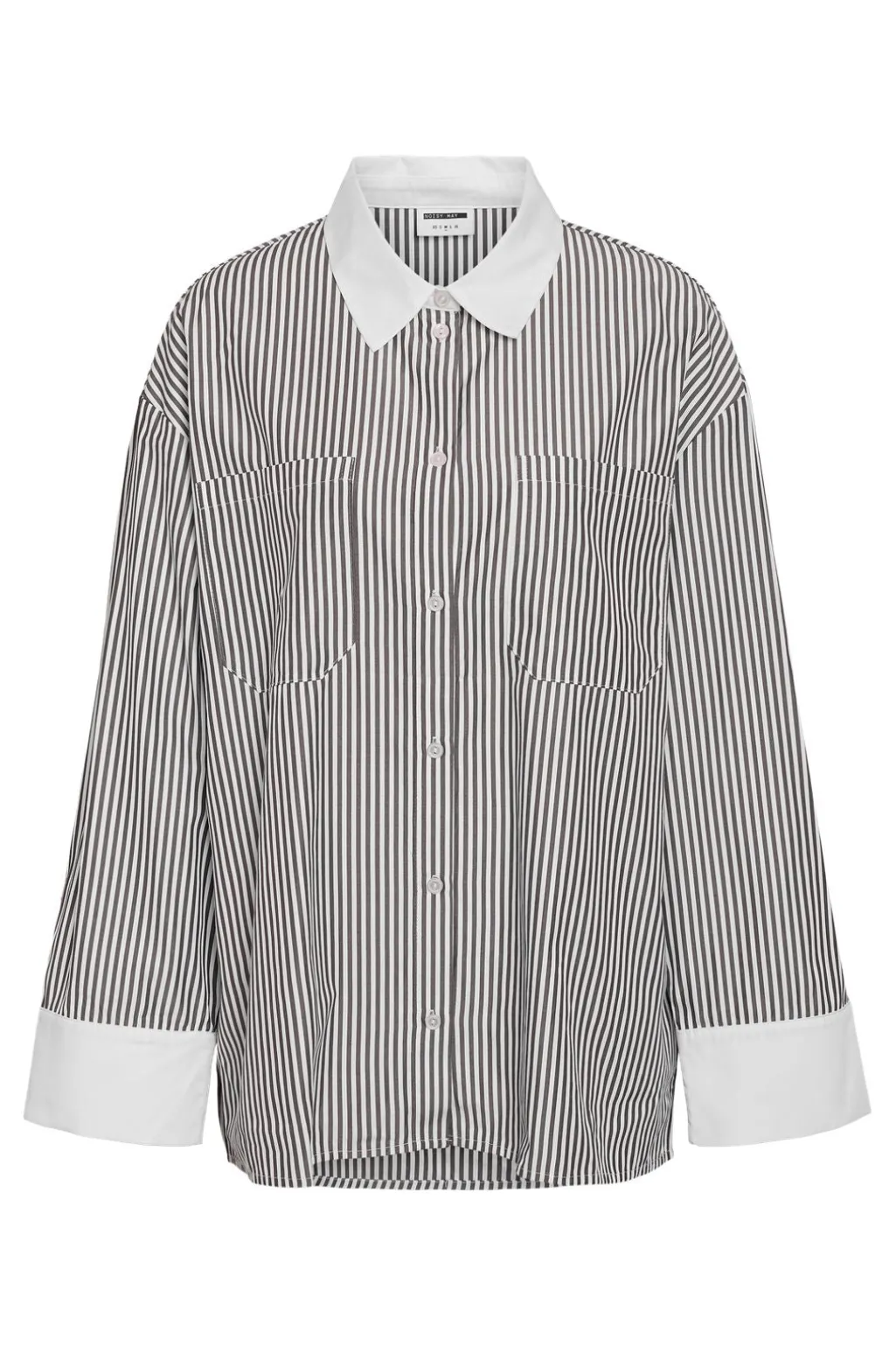 Stribet skjorte fra Noisy May i oversized pasform. Lavet af bomuld med sorte og hvide striber samt hvide kontrastdetaljer på kraven og manchetterne.