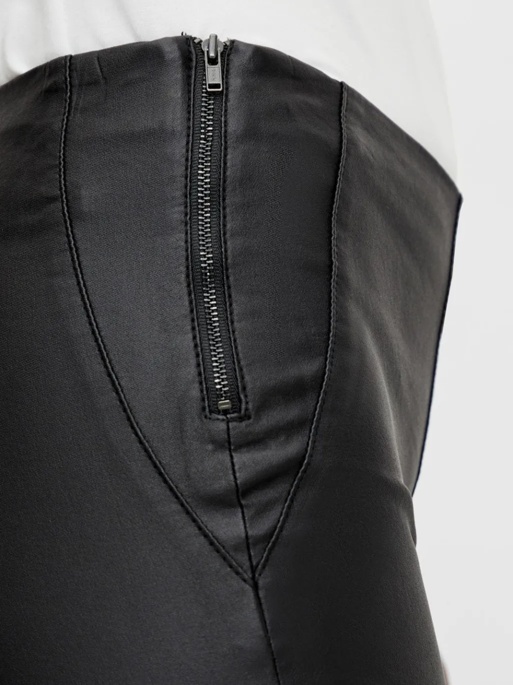 Sorte leggings fra Object med coated overflade og lynlåslukning i siden. Det coatede materiale giver et læderagtigt look, og leggingsene har en slim fit-pasform.