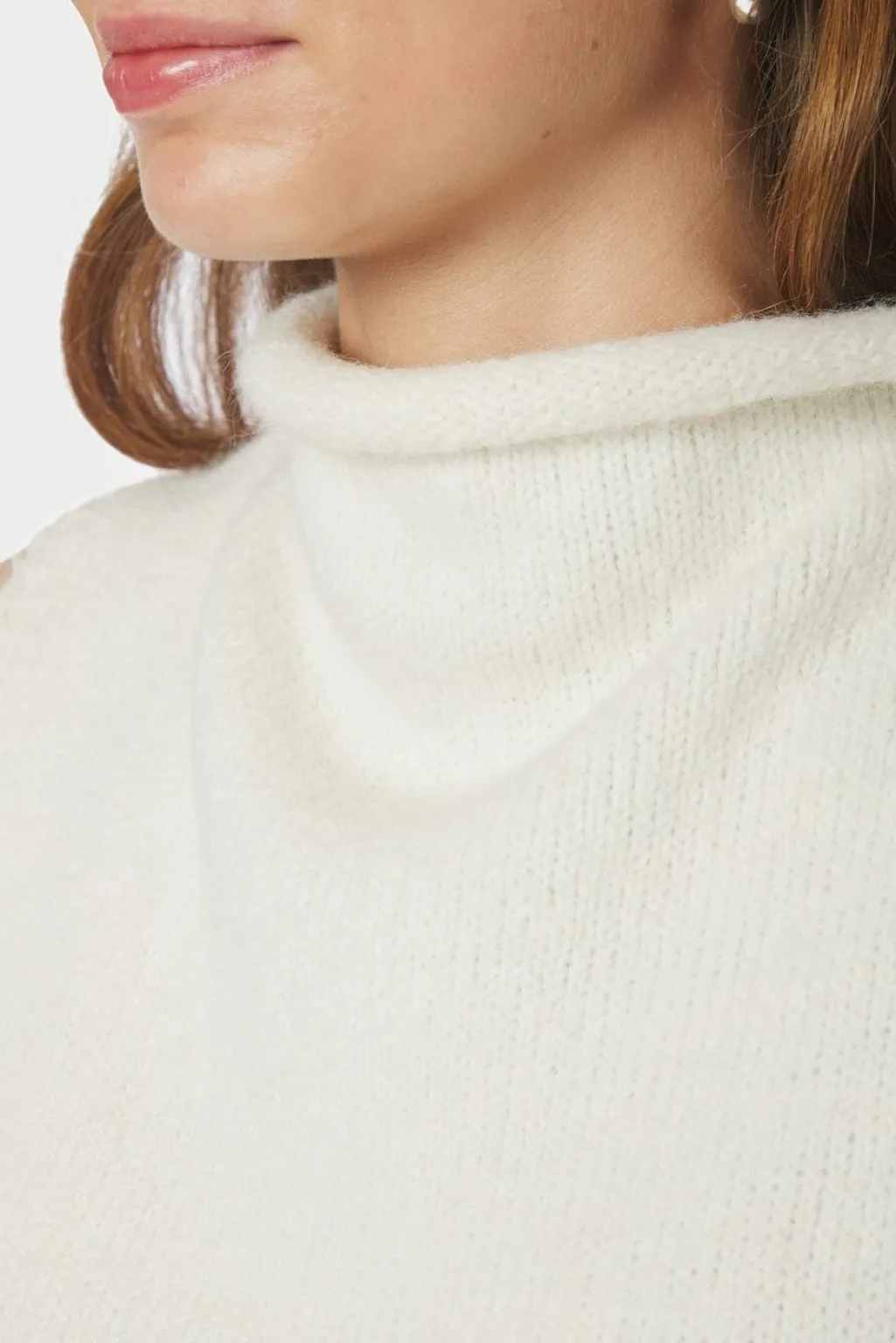 Strikket top fra Neo Noir i off-white. Toppen har høj hals og er ærmeløs med en tydelig strikket struktur.