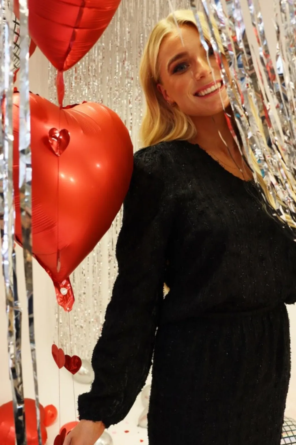 Sort bluse fra Liberte med lange ærmer og V-halsudskæring. Den har en let gennemsigtig overflade med vertikale linjer, der giver blusen struktur og dybde.