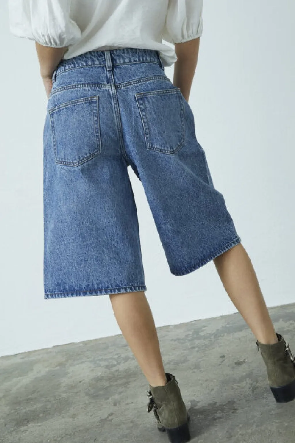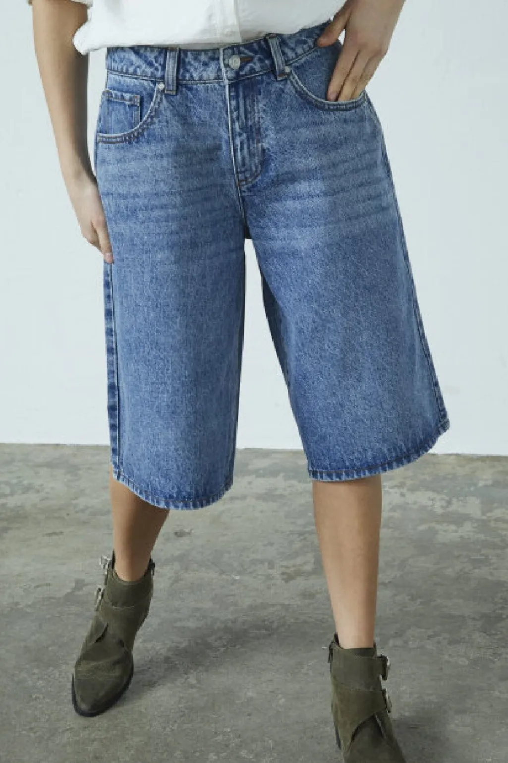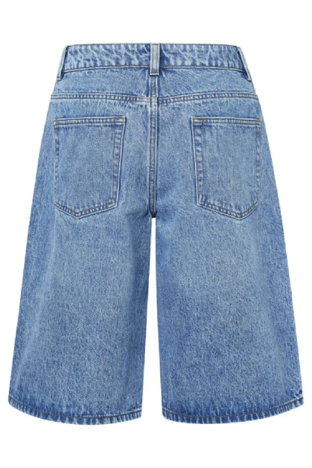 Lysblå denimshorts fra Sisters Point med loose fit og knælængde. Shortsene har en mellemhøj talje og er fremstillet i klassisk denim med fem praktiske lommer.
