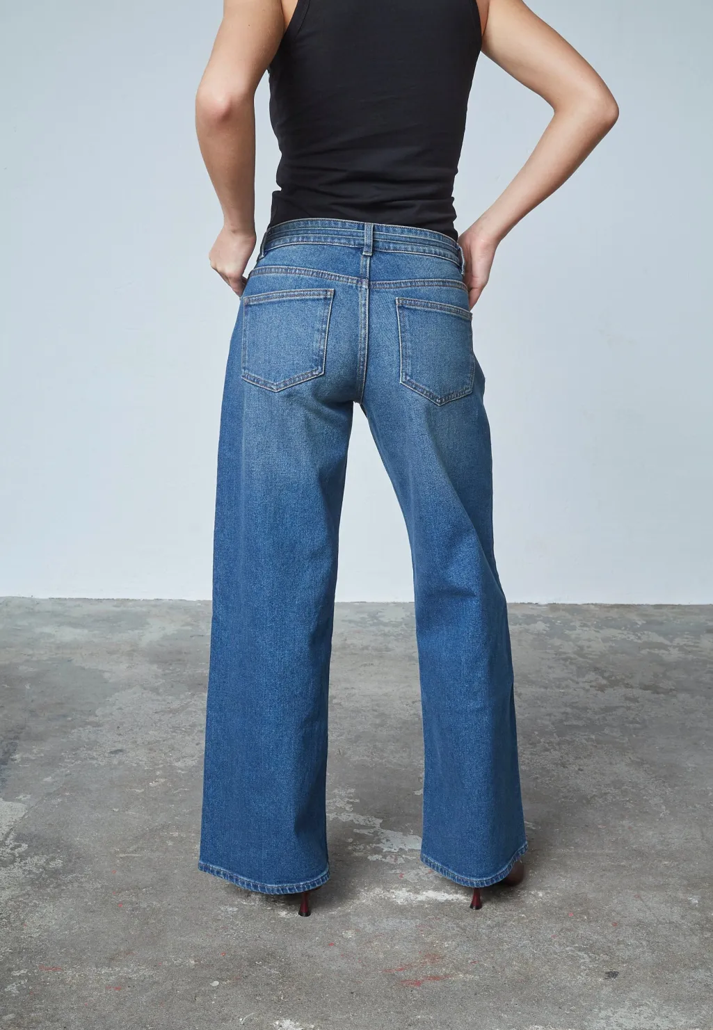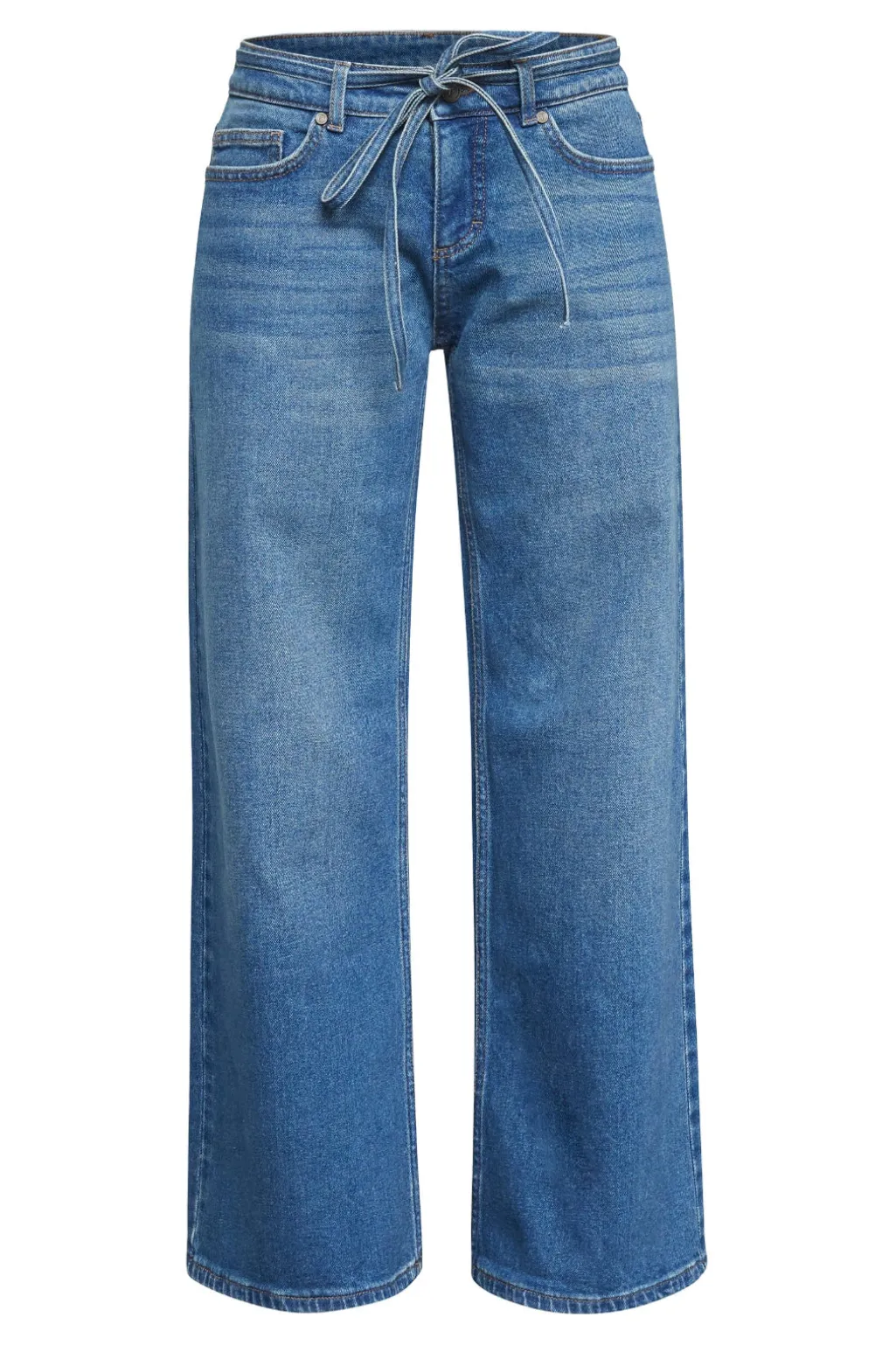 Blå jeans fra Sisters Point i en vintage blå nuance. Jeansene har høj talje og vide ben med en løs pasform.