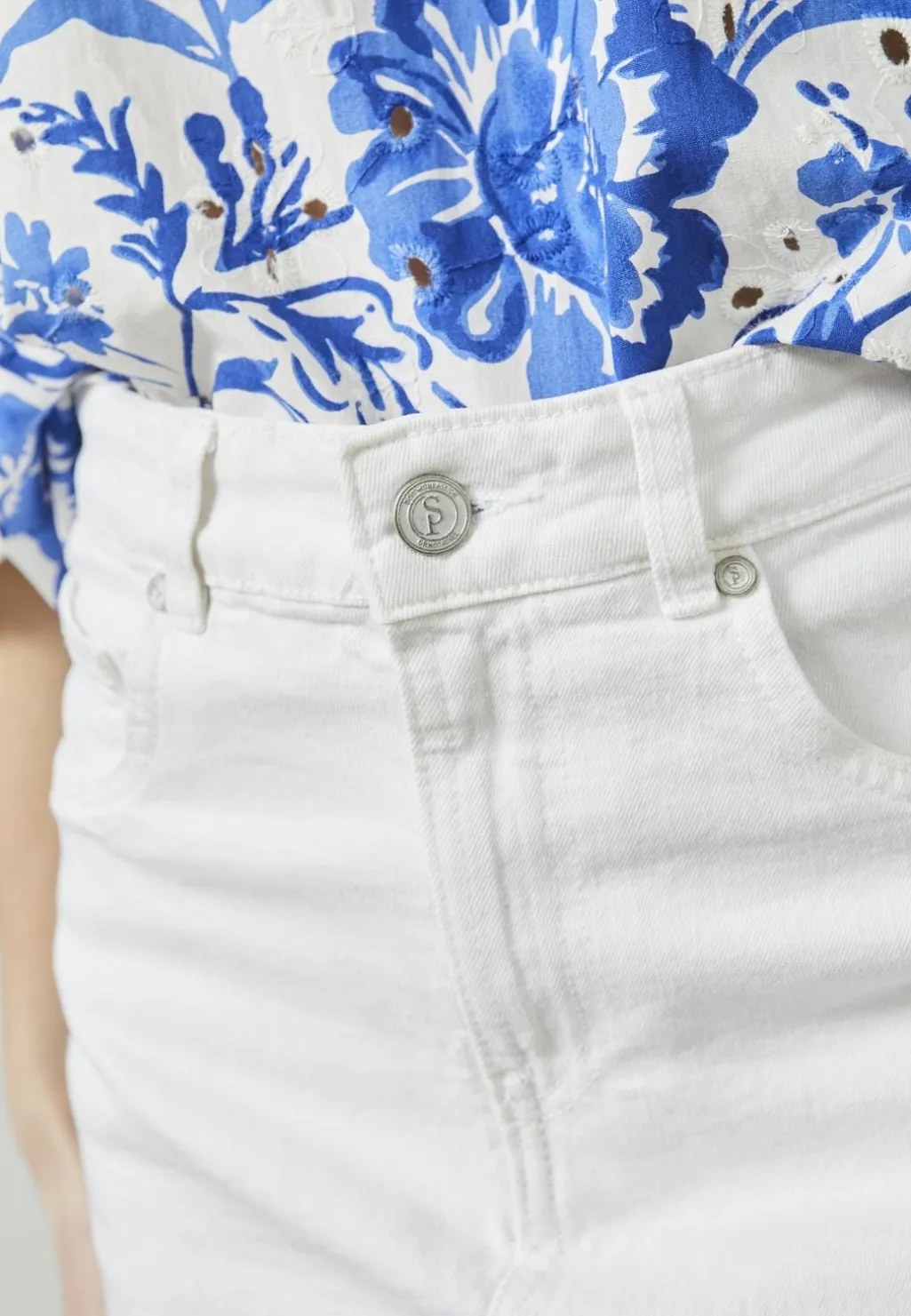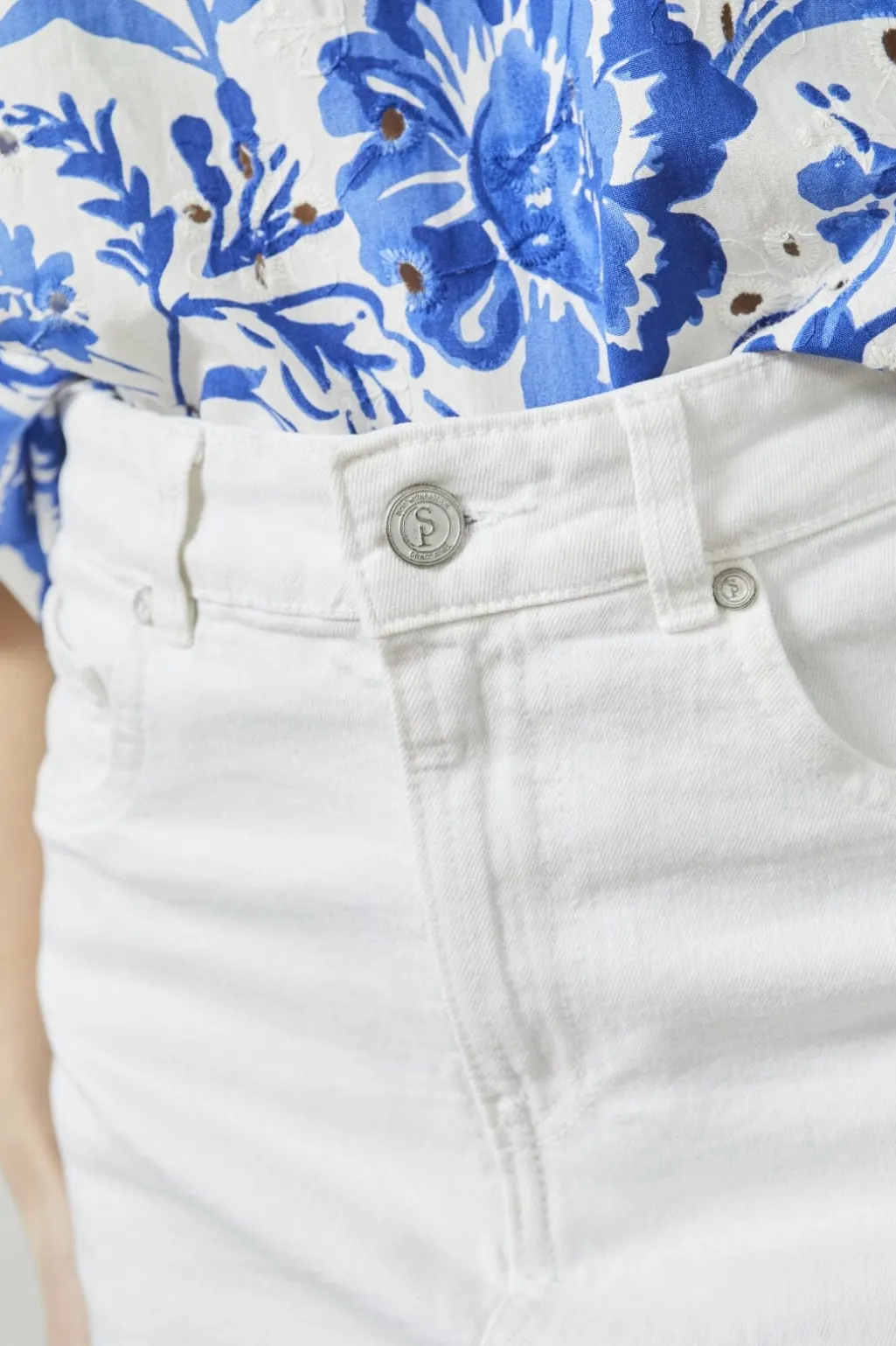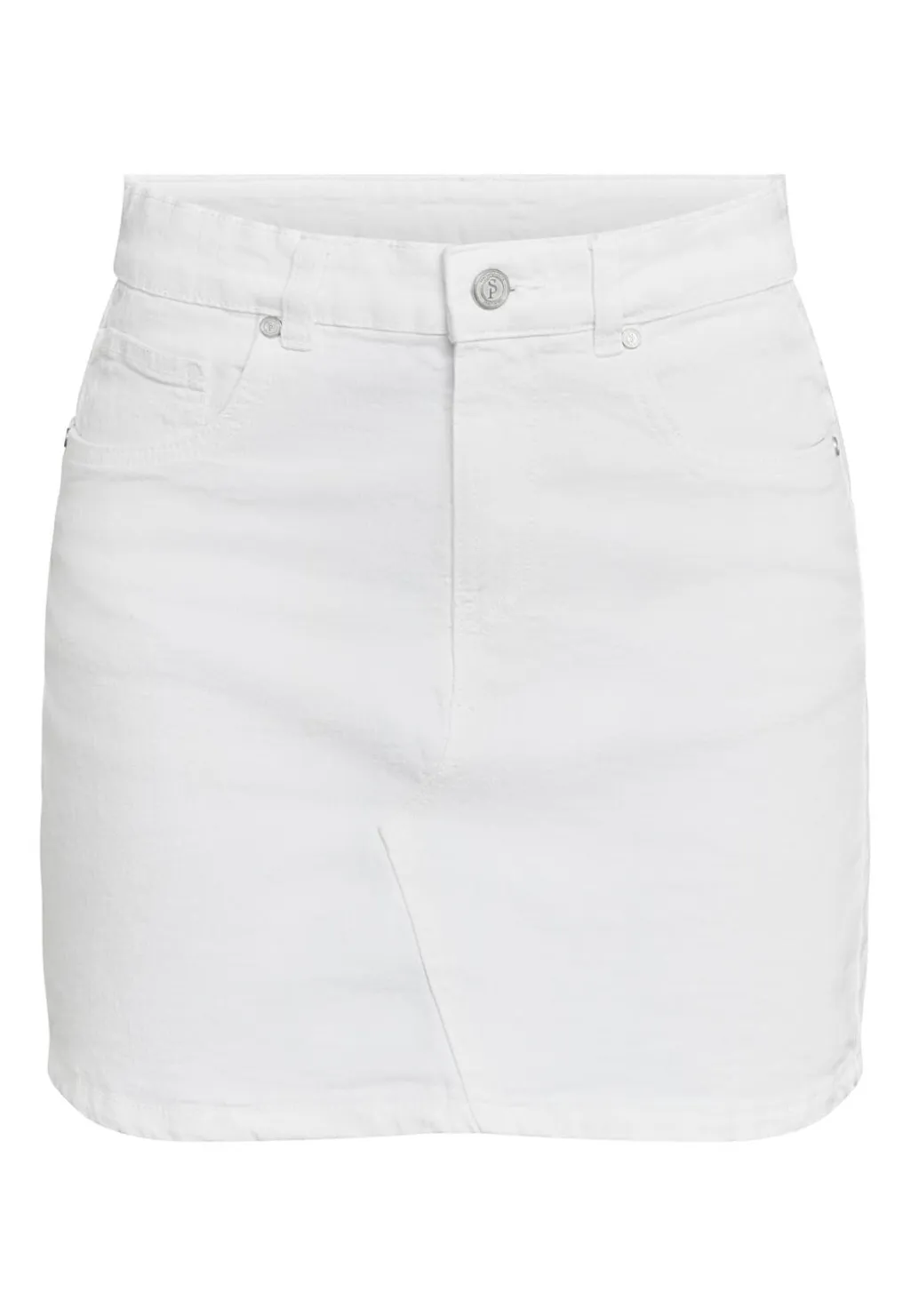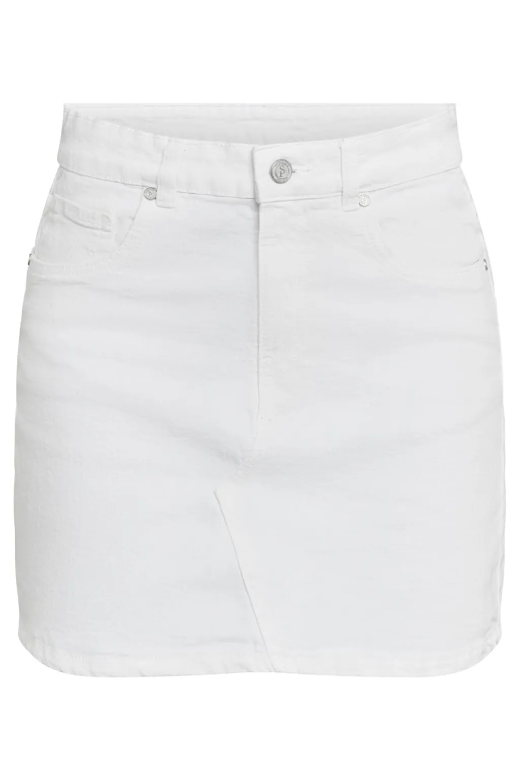 Hvid denimnederdel fra Sisters Point med kort længde. Den har en slim fit-pasform og en linning med knap- og lynlåslukning. Nederdelen er lavet i en blød bomuldsblanding.