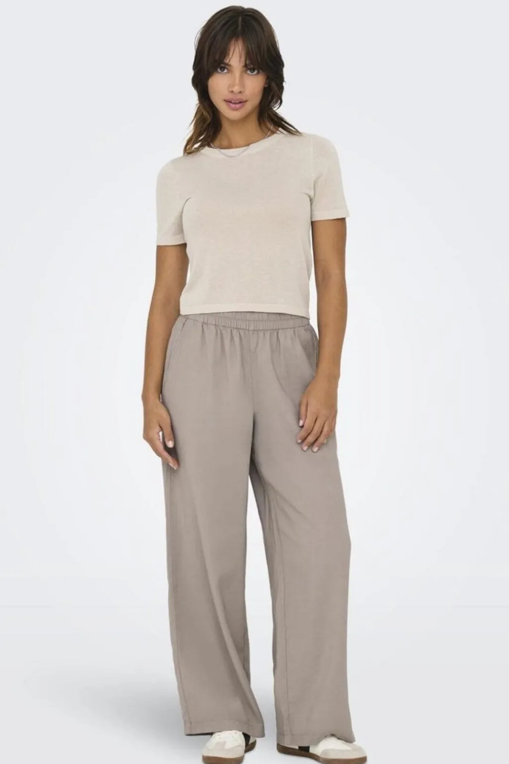 Bukser fra Only i khaki med elastisk talje og straight fit. Bukserne har en afslappet pasform og er lavet i et blødt og åndbart materiale.