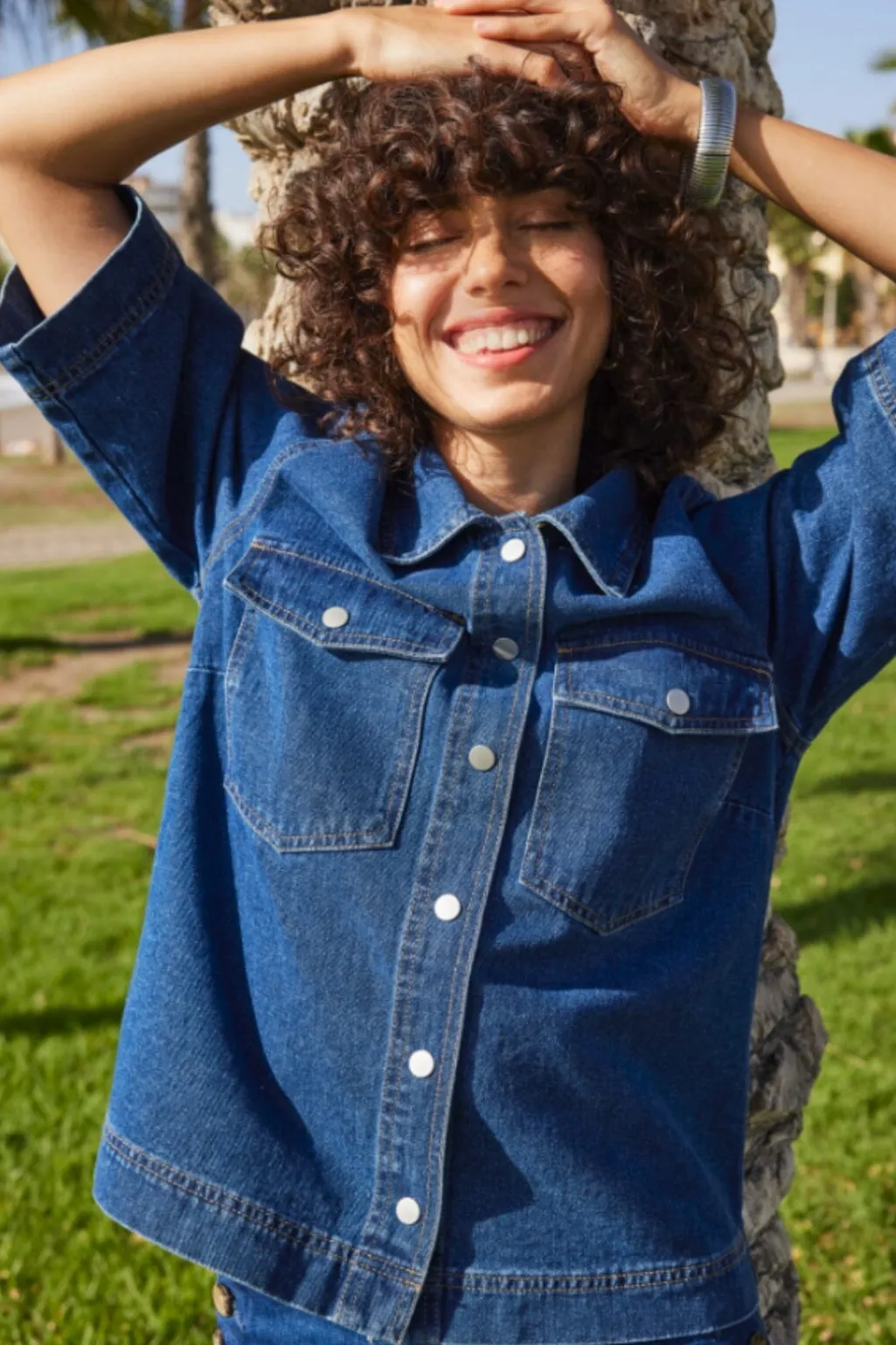 Mørkeblå denimskjorte fra Only med korte ærmer og skjortekrave. Skjorten har en regular fit og er fremstillet i bomuld med brystlommer og knaplukning foran.