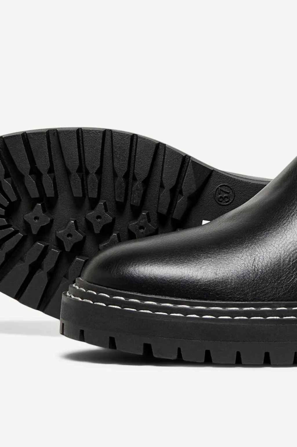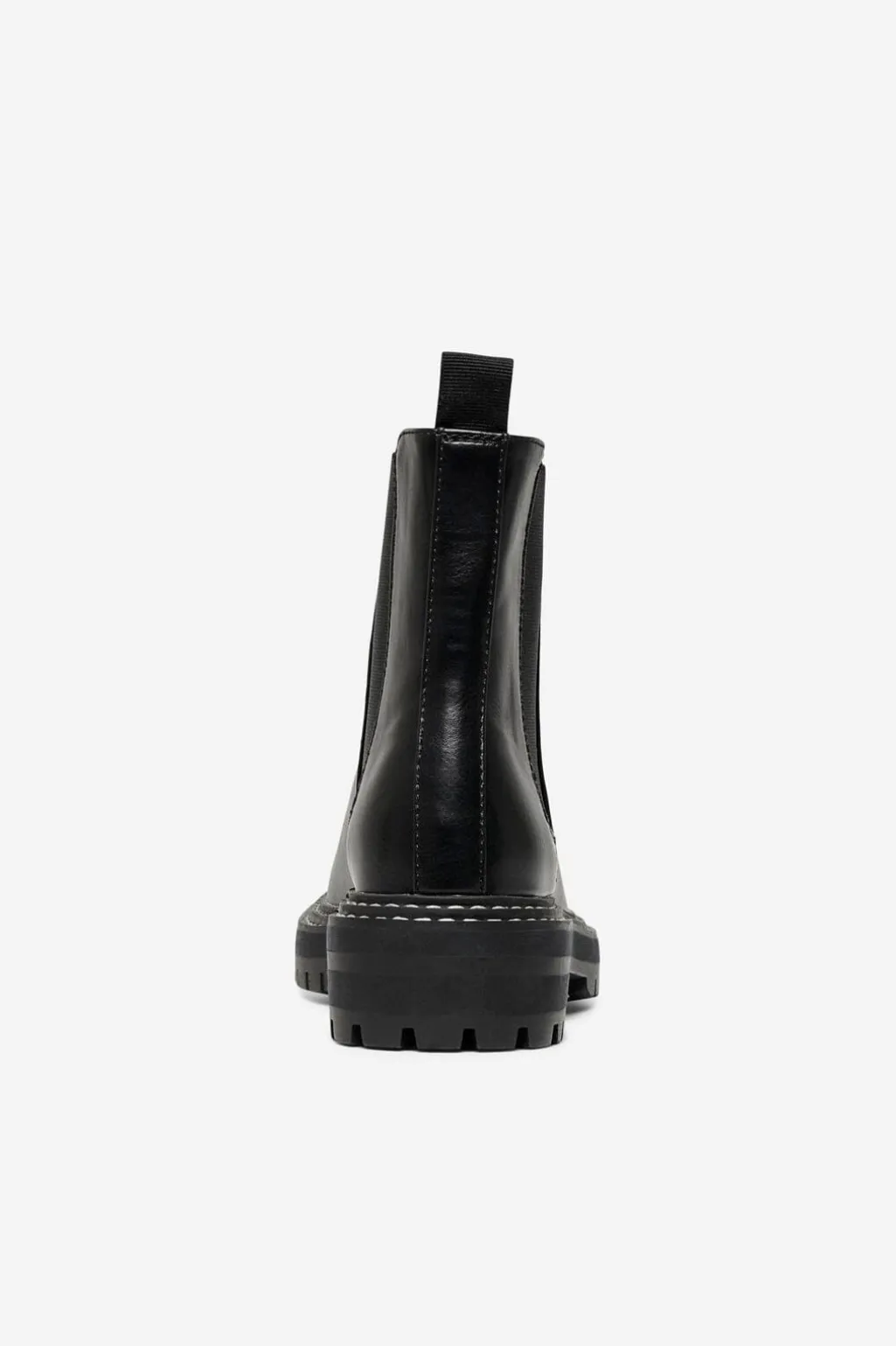 Sorte Chelsea-støvler fra Only Shoes med en enkel silhuet. Støvlerne har elastiske sidepaneler og en trækstrop bagpå.