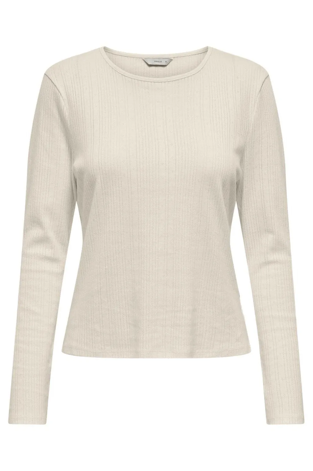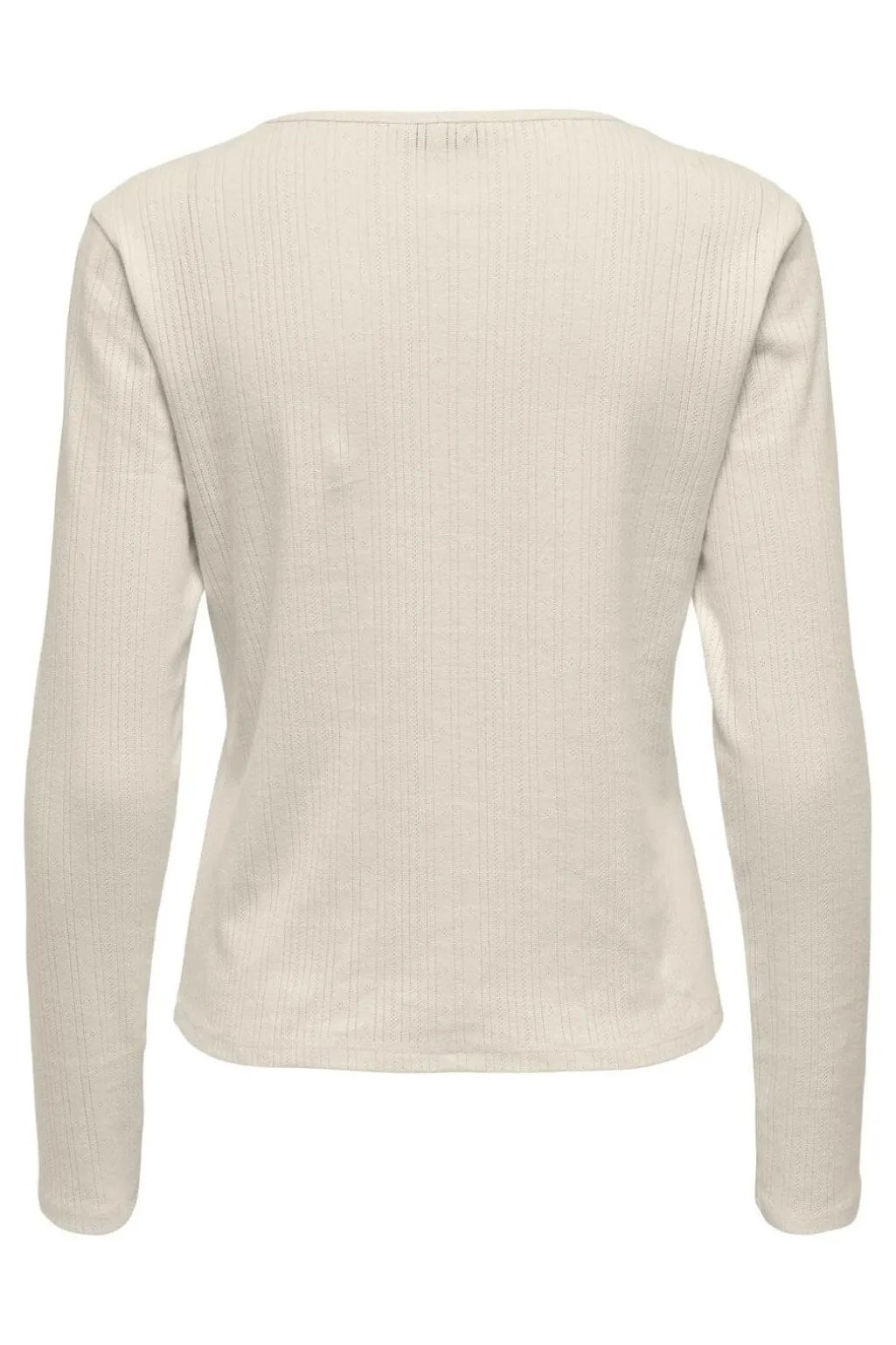 Langærmet top fra Only i lys beige bomuld. Toppen har en rund halsudskæring og en ribbet struktur, der giver et enkelt udtryk.