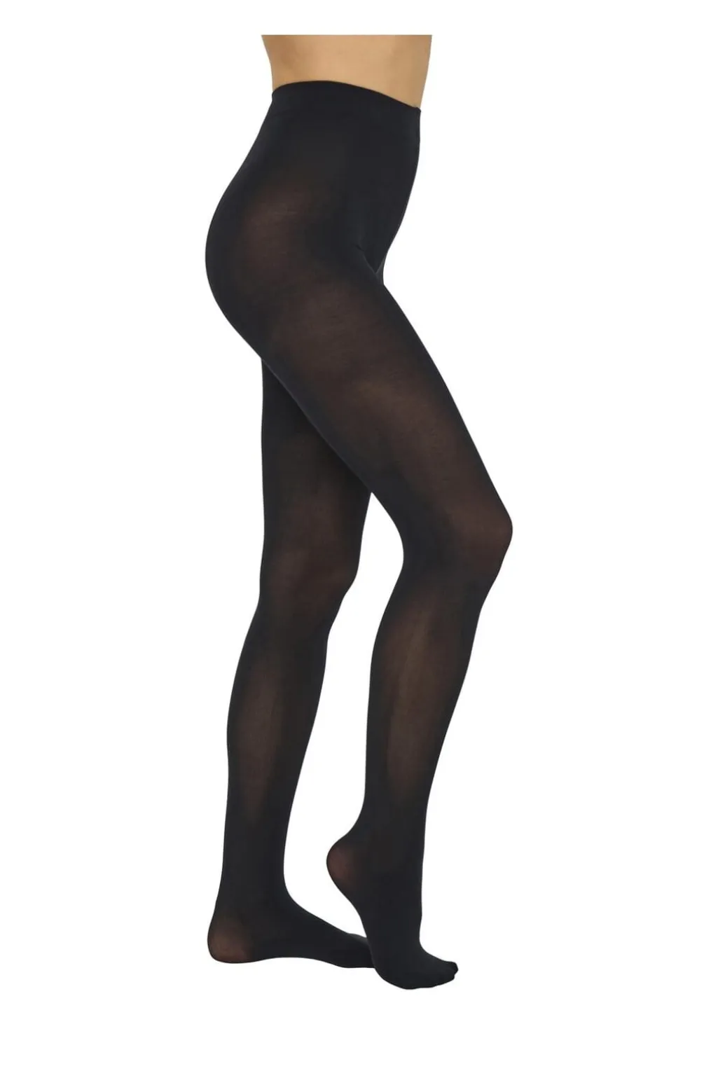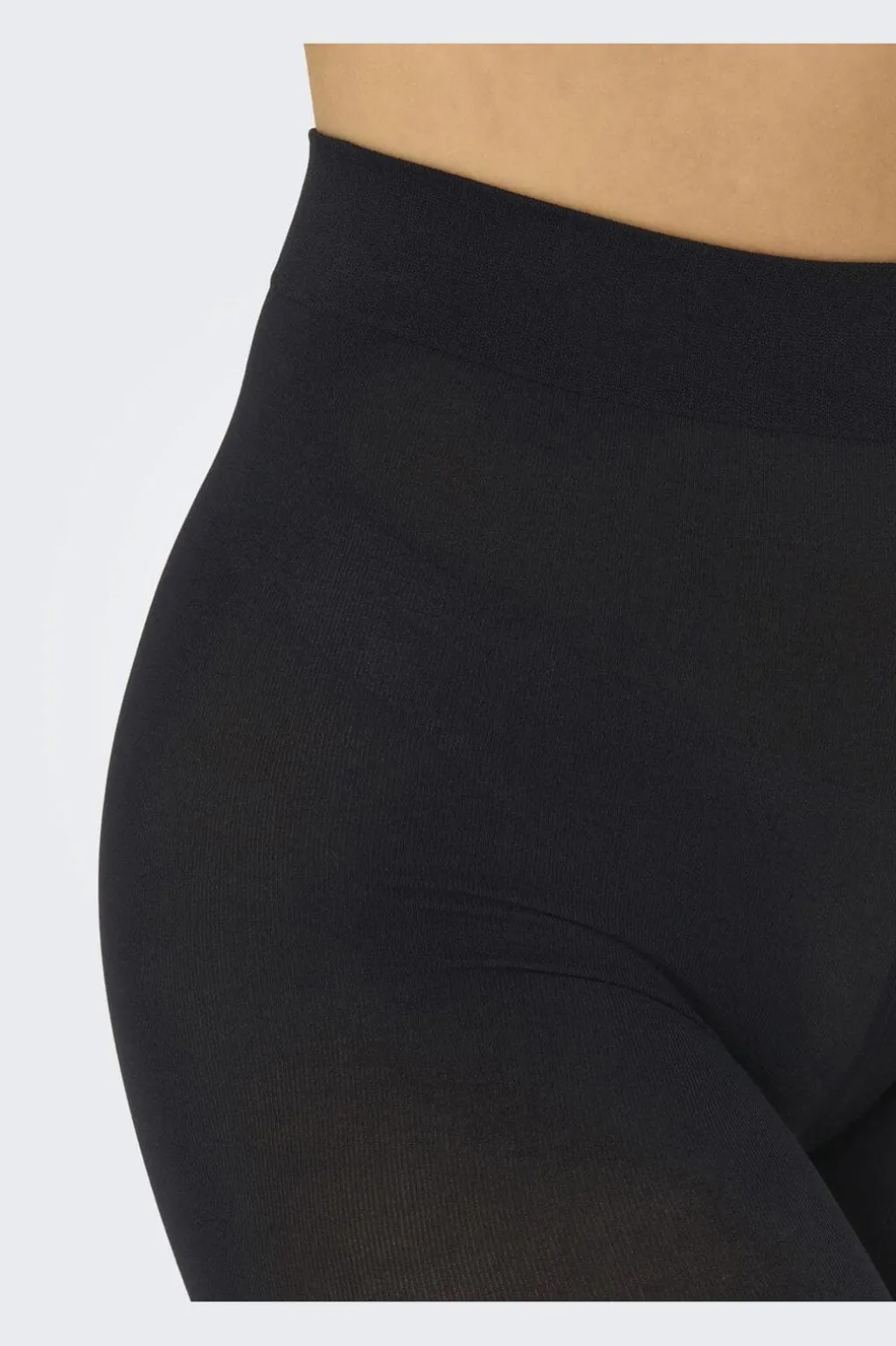 Sorte strømpebukser fra Only med 80 denier tykkelse. De har en høj talje og en tætsiddende pasform, der følger benenes form.