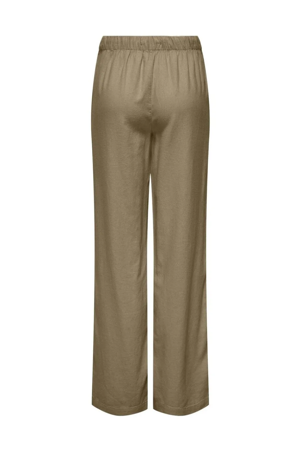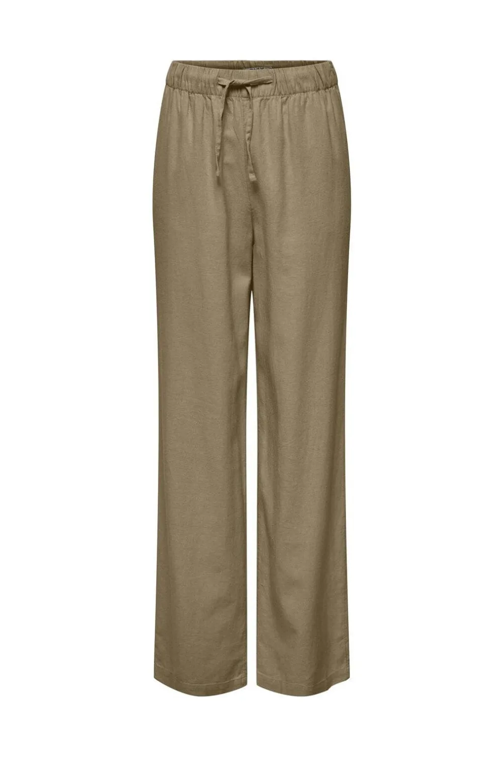 Løse bukser fra Only i en neutral elmwood-farve. Bukserne har en afslappet silhuet med brede ben og bindebånd i taljen. De lange ben giver gode stylingmuligheder året rundt.