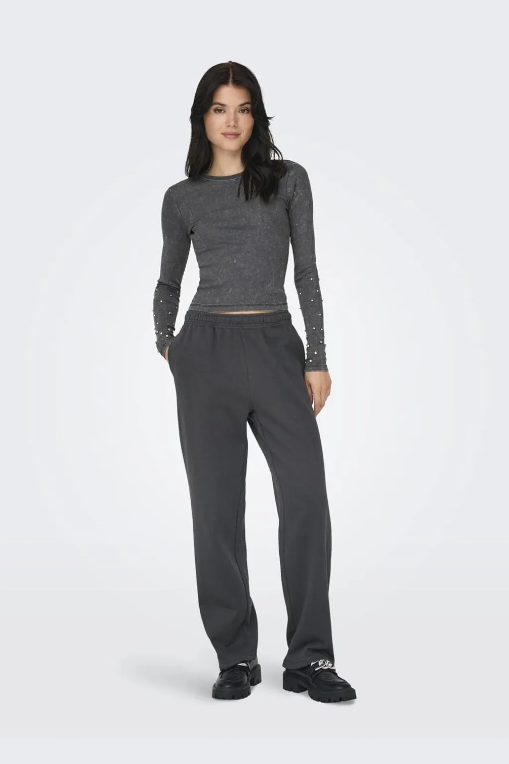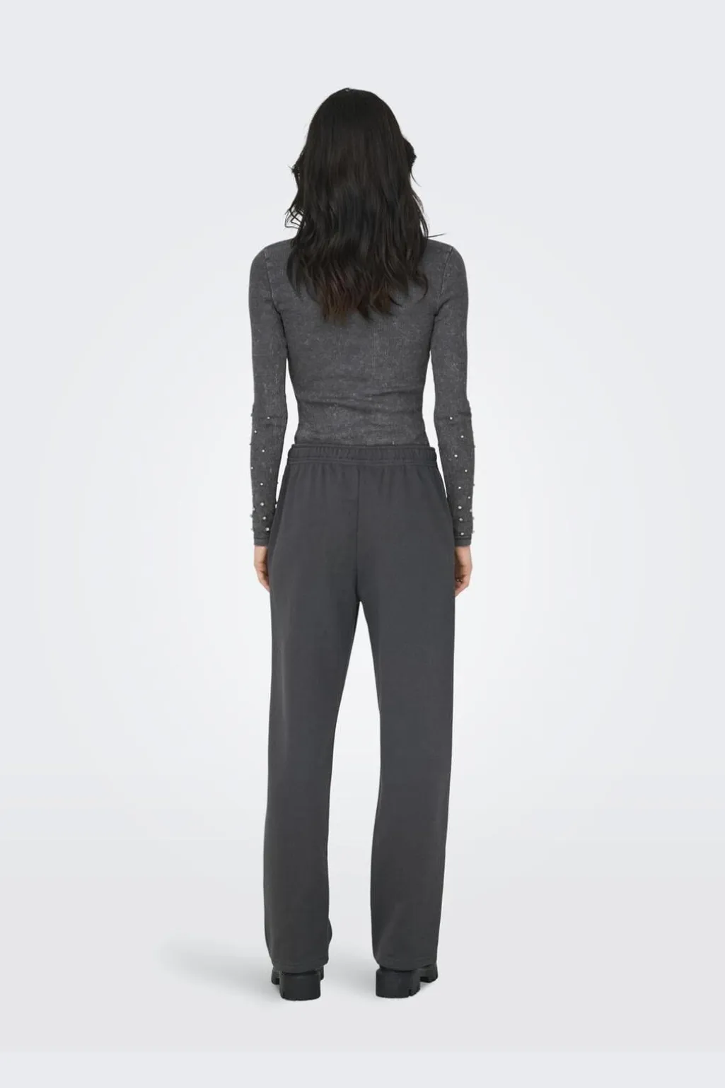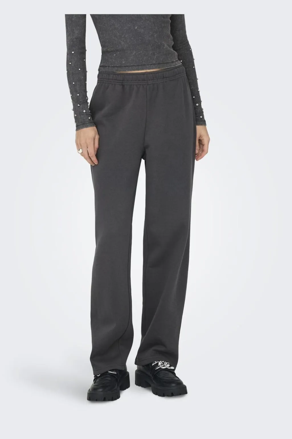 Mørkegrå sweatpants fra Only med lige ben og elastisk talje. Bukserne har en afslappet stil med praktiske detaljer til hverdagsbrug.
