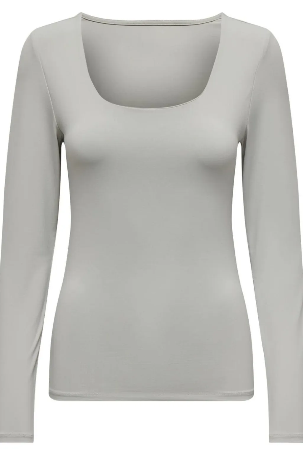 Langærmet top fra Only i Harbor Mist grå. Toppen har en firkantet udskæring og en regular fit-pasform, der giver et rent og enkelt udtryk.