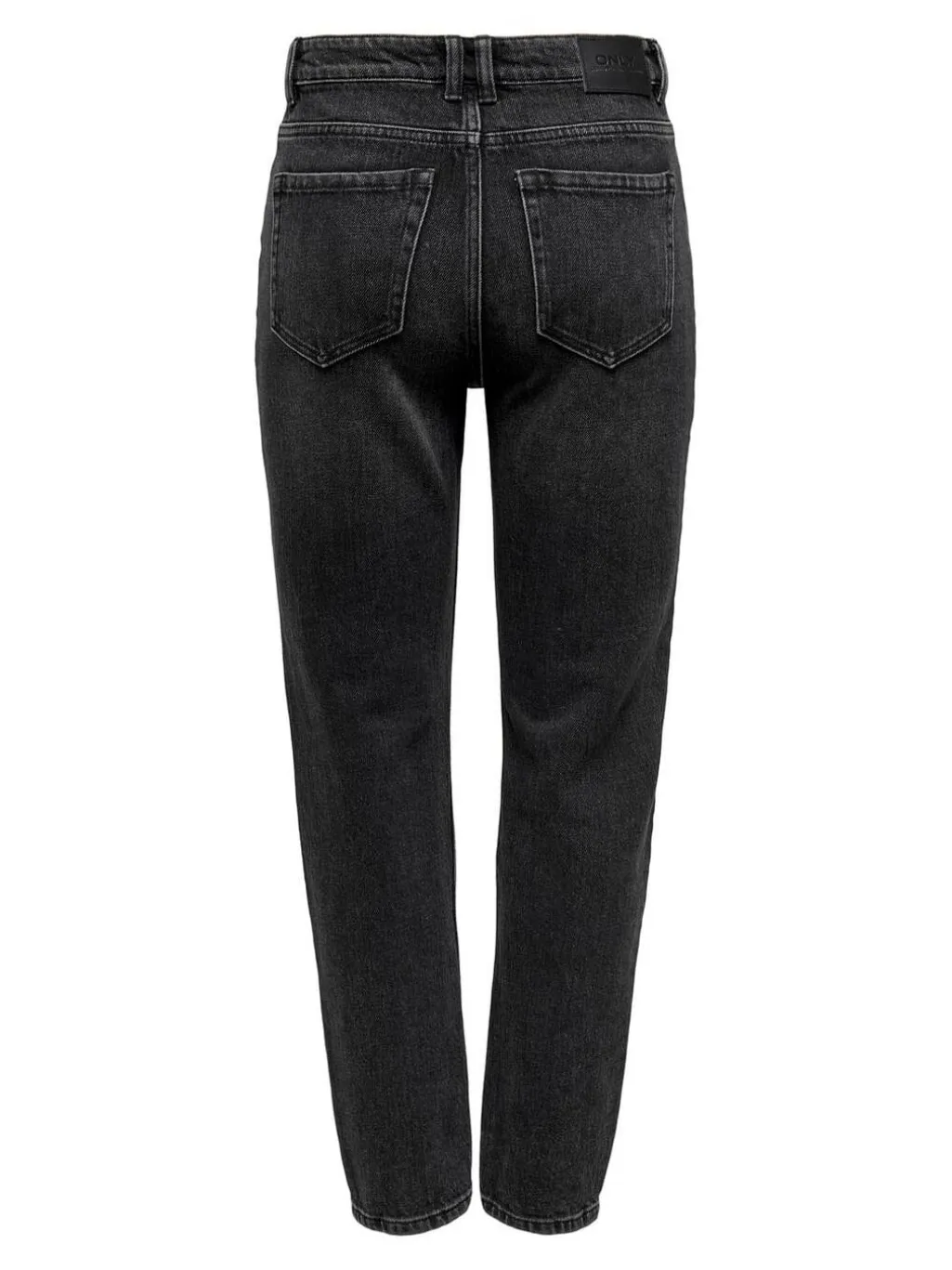Sorte denimjeans fra Only med høj talje og straight fit. Bukserne har en behagelig pasform med plads omkring lårene og lukkes med både knapper og lynlås.
