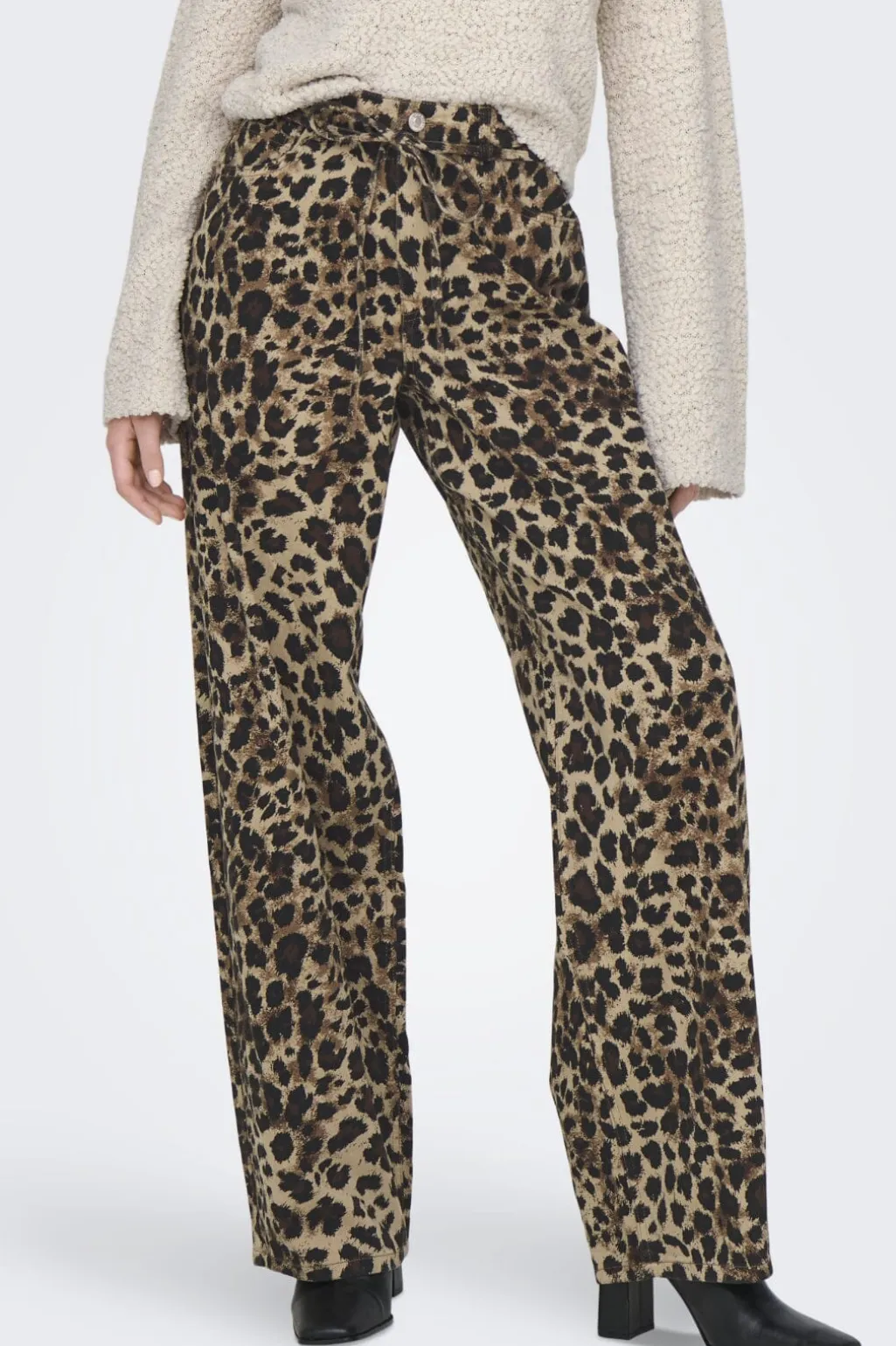 Bukser fra Only i beige med sort leopardprint. Den lige pasform og det medfølgende bælte giver bukserne et afslappet udtryk med god bevægelsesfrihed.