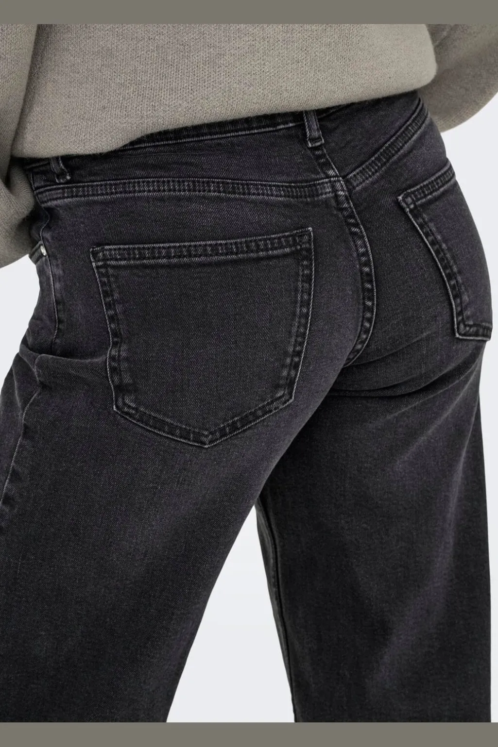 Wide leg jeans fra Only i vasket sort. Jeansene har en løs pasform og brede ben, der går til anklen.