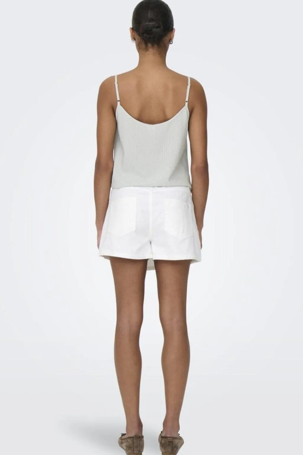 Hvid denim skort fra Only med omslagsdesign. Skorten har en slim fit-pasform med mellemhøj talje og tre knapper i siden. Praktiske lommer foran og bag gør den funktionel til hverdagsbrug.