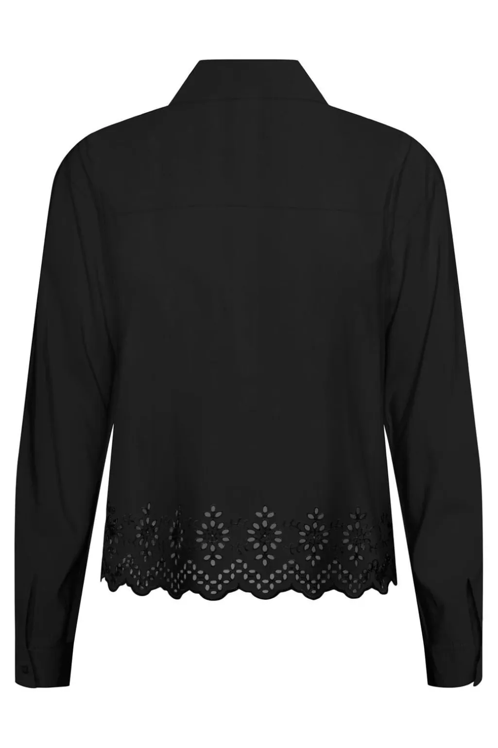 Sort skjorte fra Only med broderidetaljer langs kanten. Skjorten har en klassisk krave, knaplukning foran og lange ærmer.