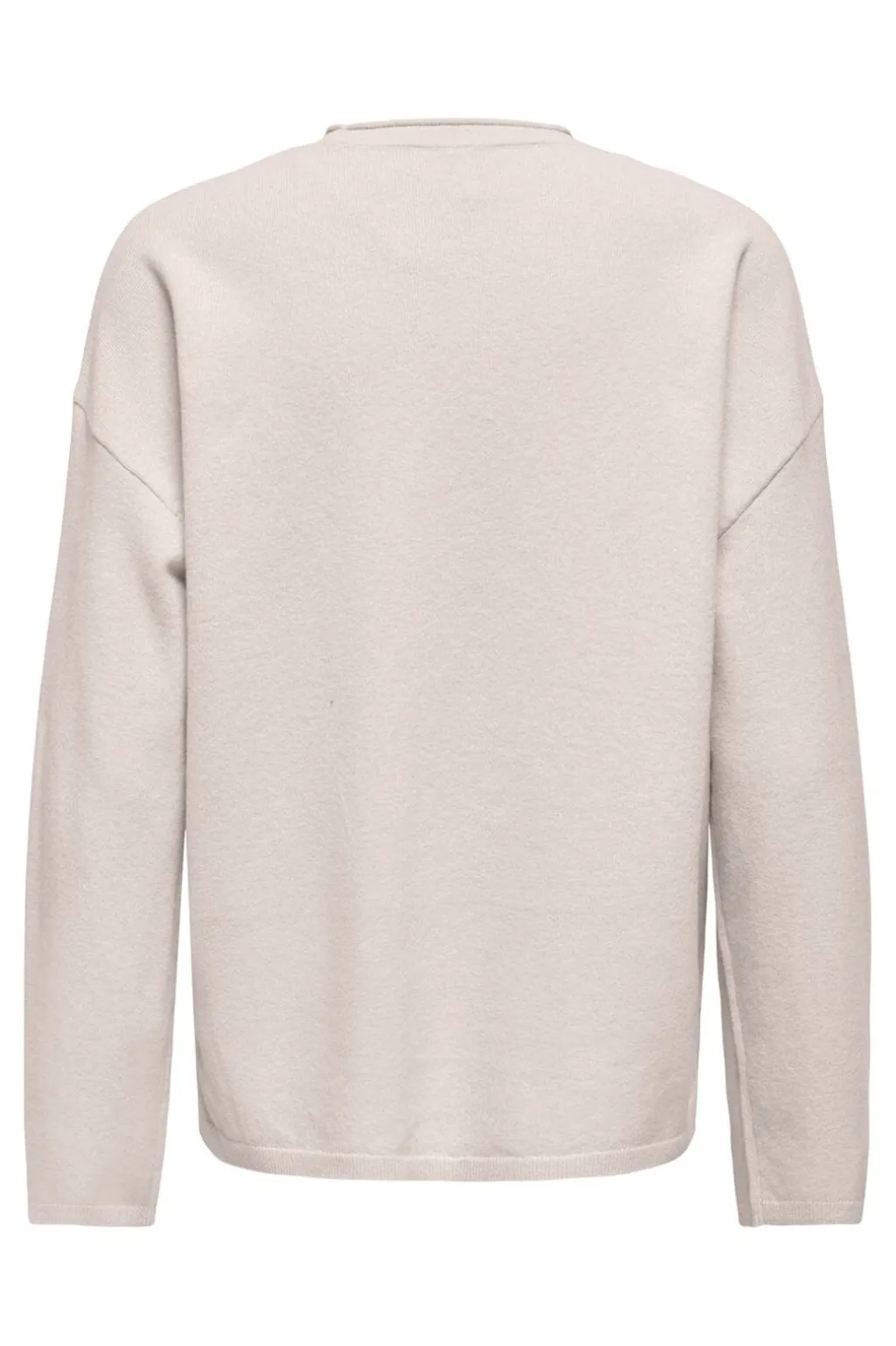 Striktrøje fra Only i en lys beige meleret farve. Trøjen har en rund halsudskæring, lange ærmer og ribstrikkede kanter ved ærmerne og bunden.