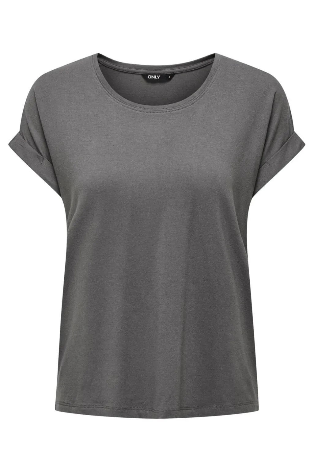 Grå t-shirt fra Only med rund halsudskæring og korte ærmer med opsmøg. T-shirten har en regular fit og er lavet i en blød materialeblanding.