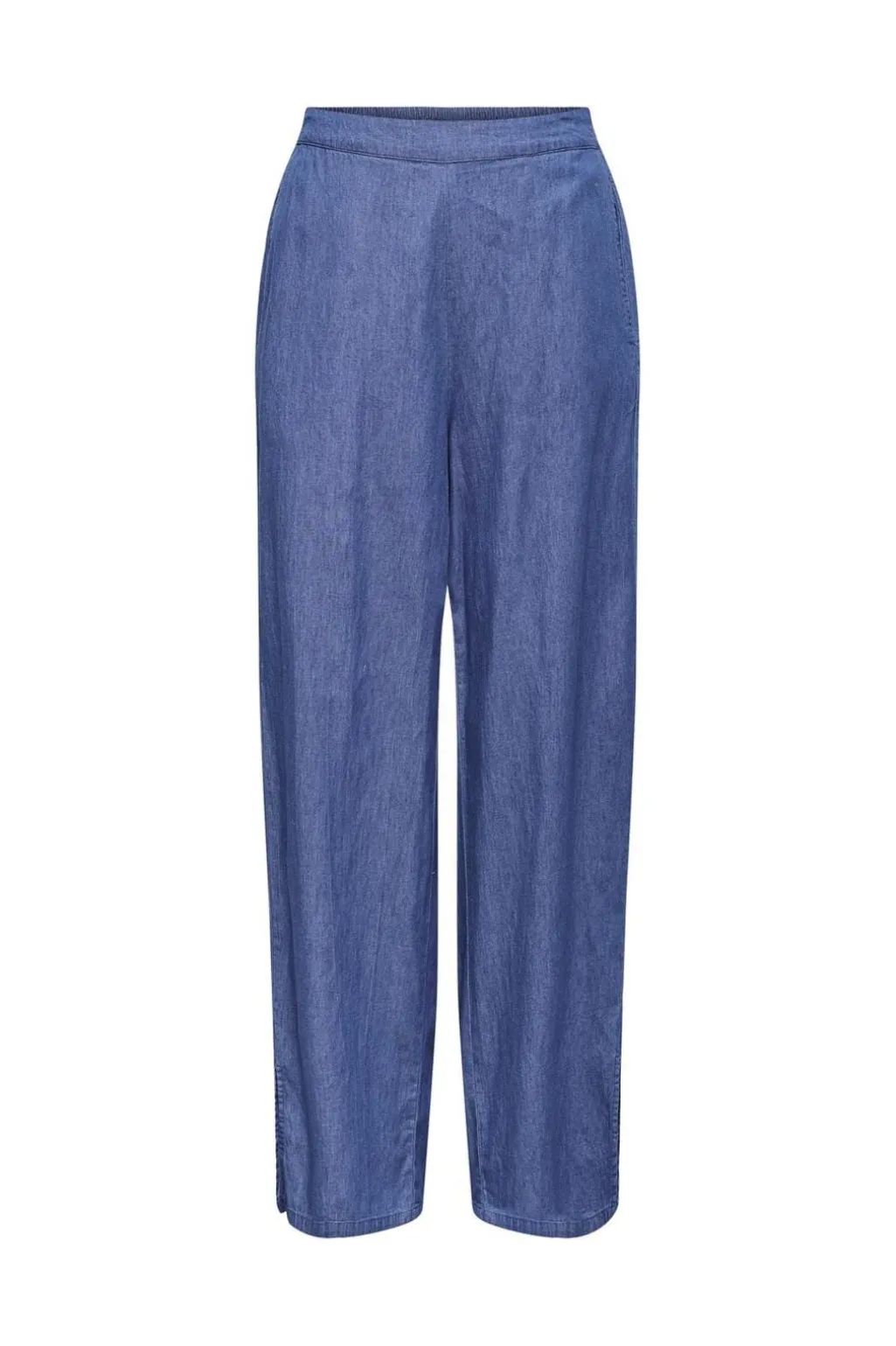 Denimbukser fra Only i mellemblå med regular fit. Bukserne har flæser og elastisk talje, hvilket giver en god kombination af stil og komfort til hverdagens mange gøremål.