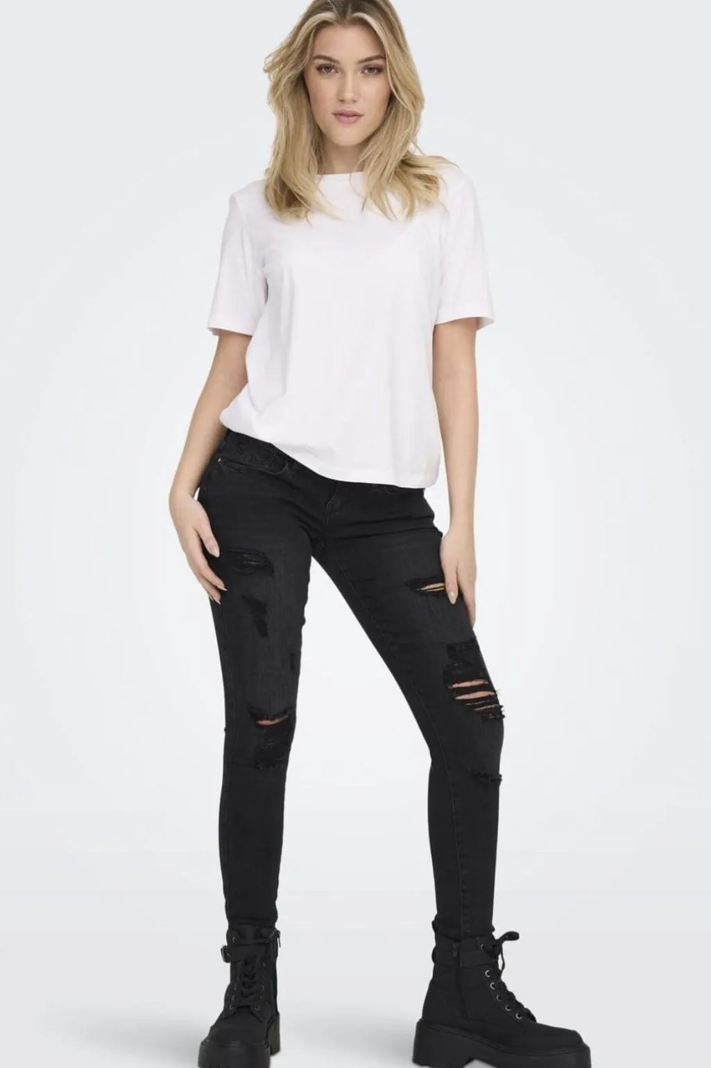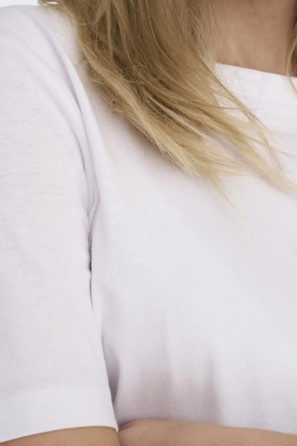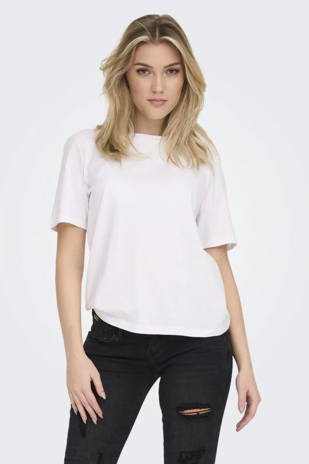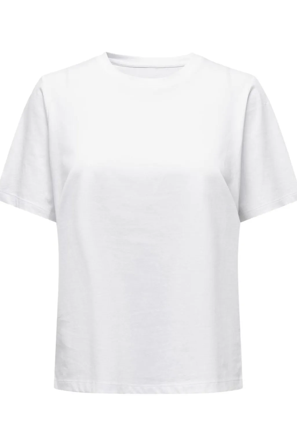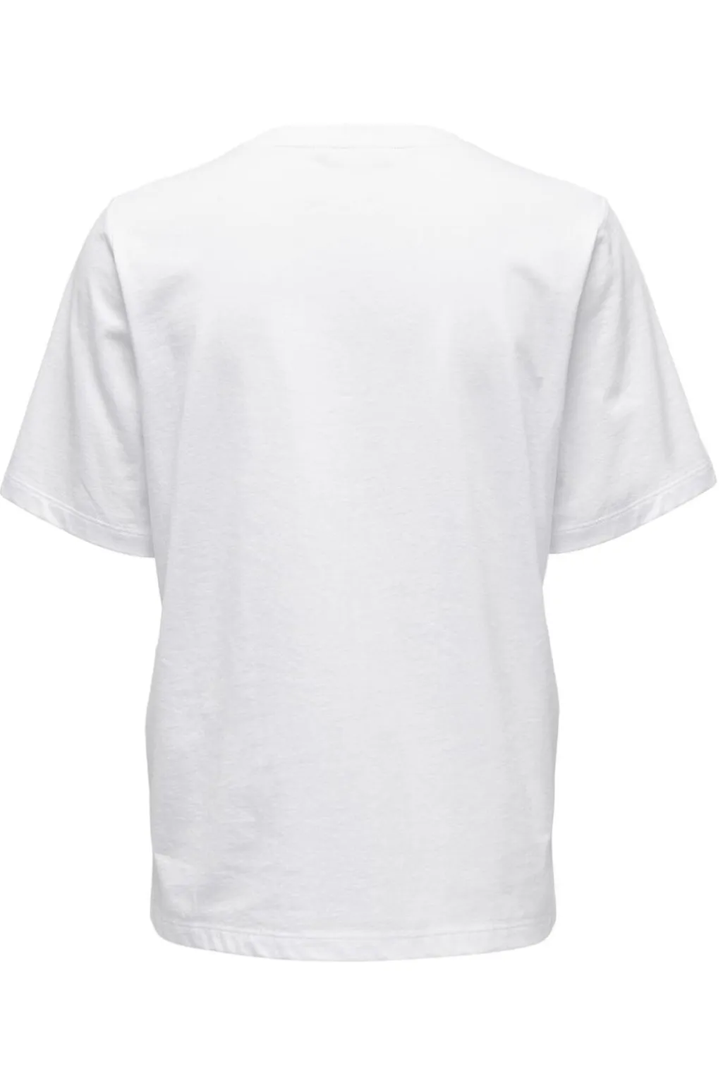 Hvid t-shirt fra Only i regular fit. T-shirten har en rund halsudskæring og korte ærmer, hvilket giver den et klassisk udtryk.