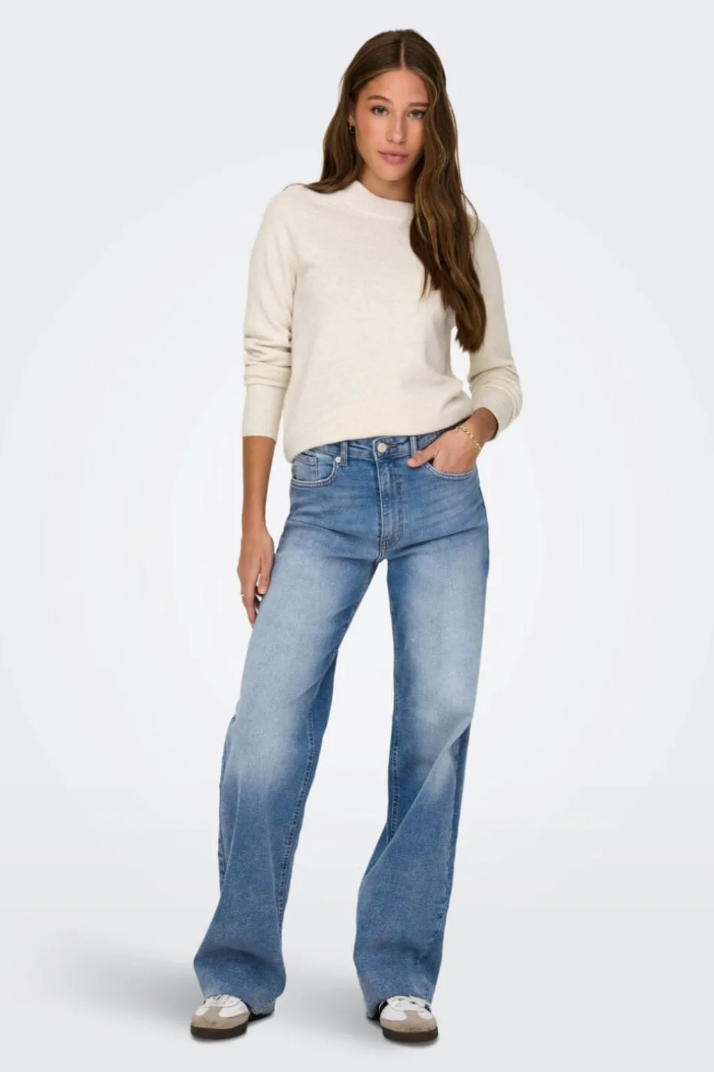 Lys beige striktrøje fra Only med rund halsudskæring og lange ærmer. Den melerede overflade giver striktrøjen en blød struktur, og den regulære pasform sikrer god bevægelsesfrihed.