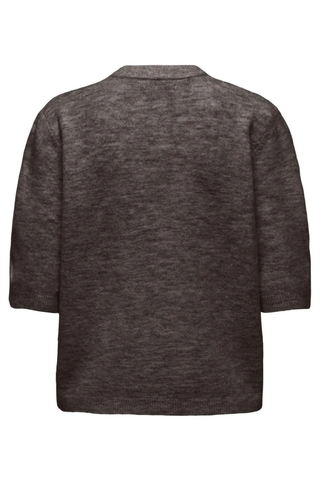 Brun cardigan fra Only i en meleret Coffee Bean-nuance. Den løse model har bindebånd foran og 3/4-ærmer med en rund halsudskæring.