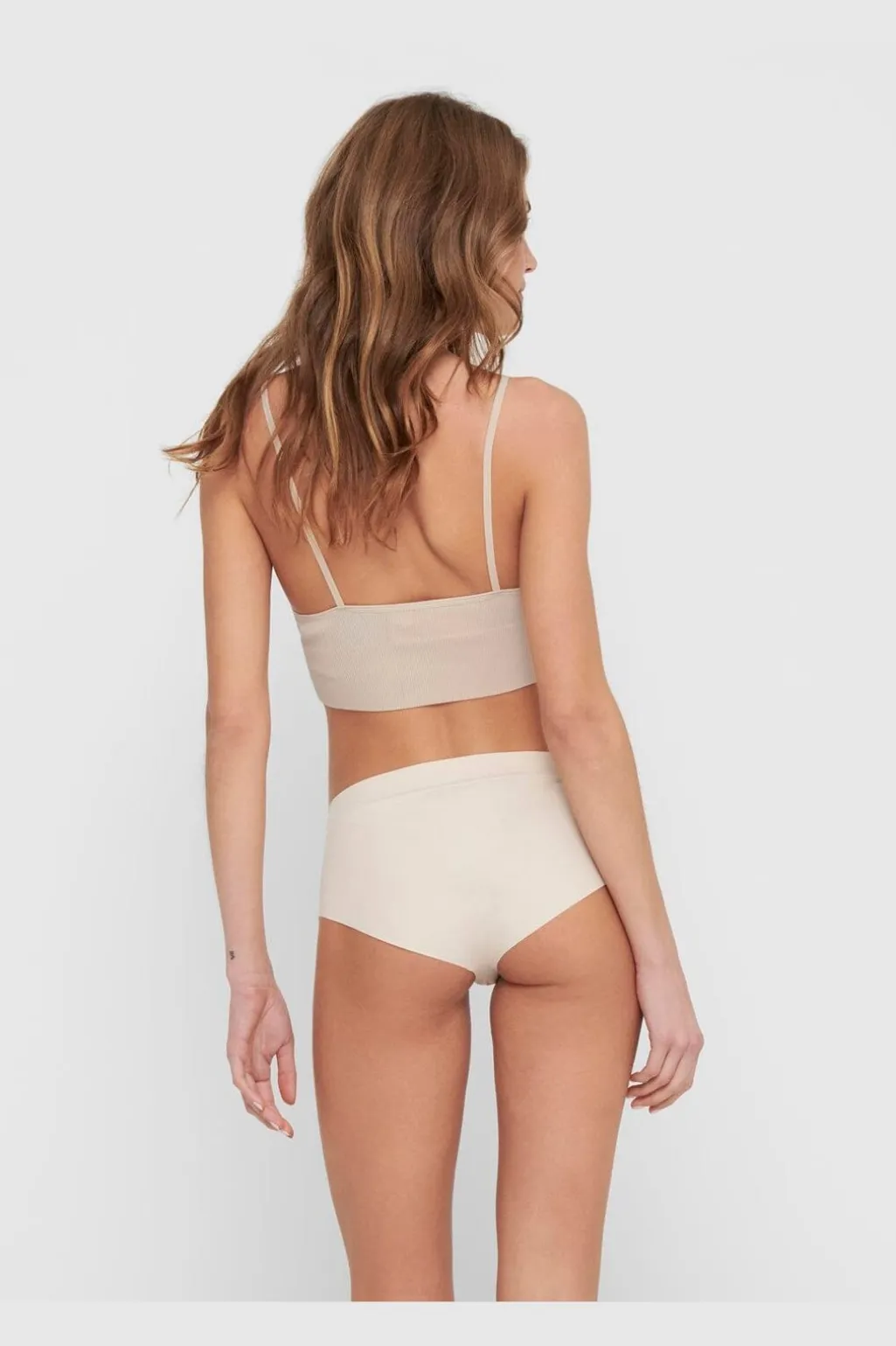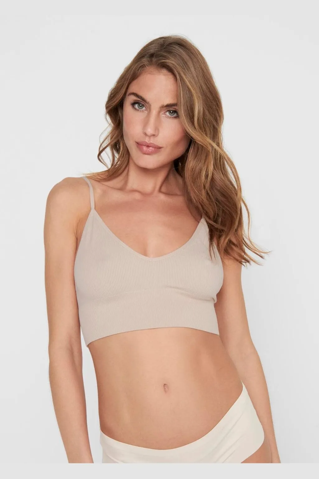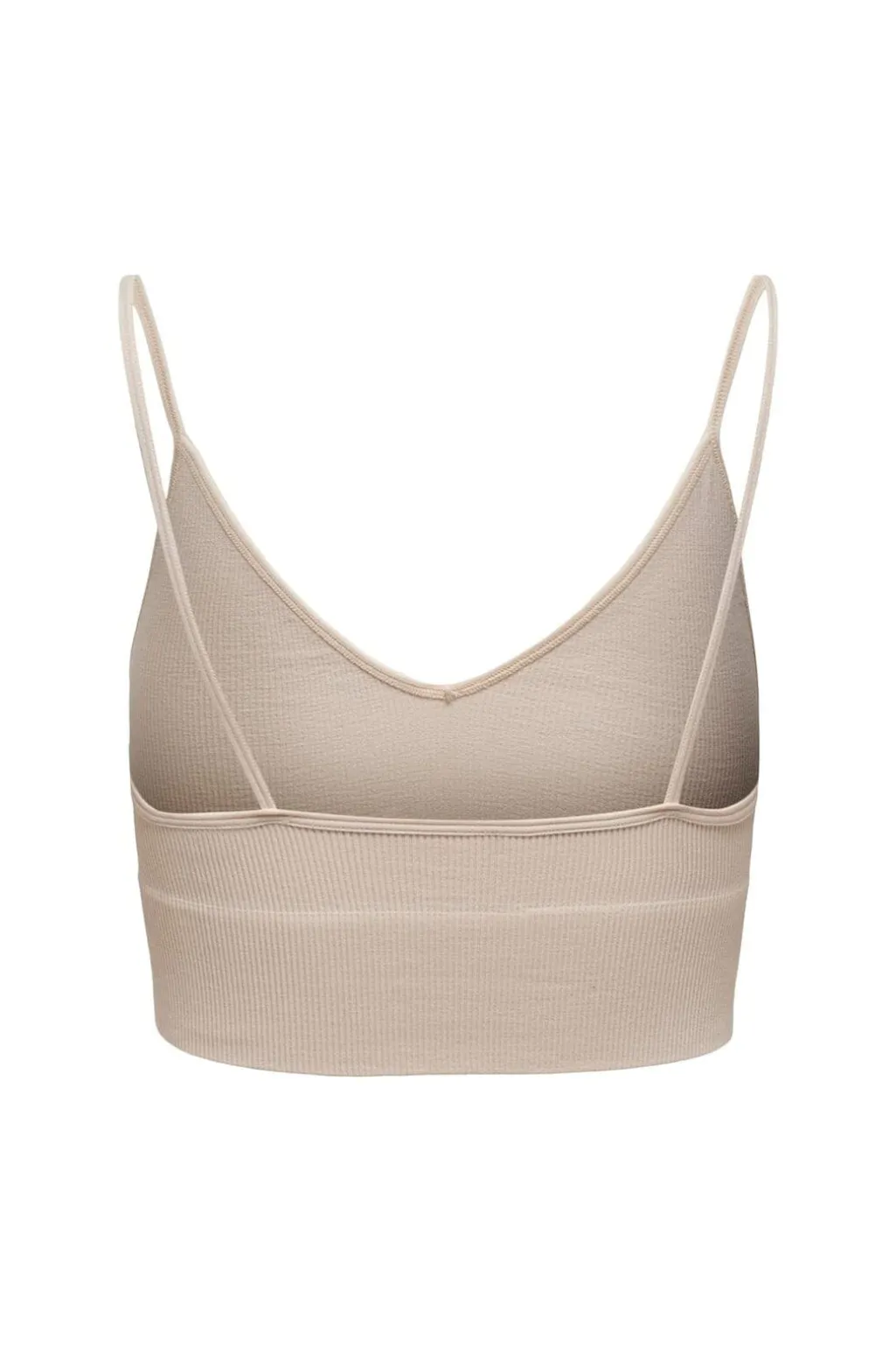 Ribstrikket top fra Only i ferskenfarvede nuancer. Toppen har en tætsiddende pasform med V-hals og tynde stropper. Den ribbede tekstur giver et praktisk og behageligt design.