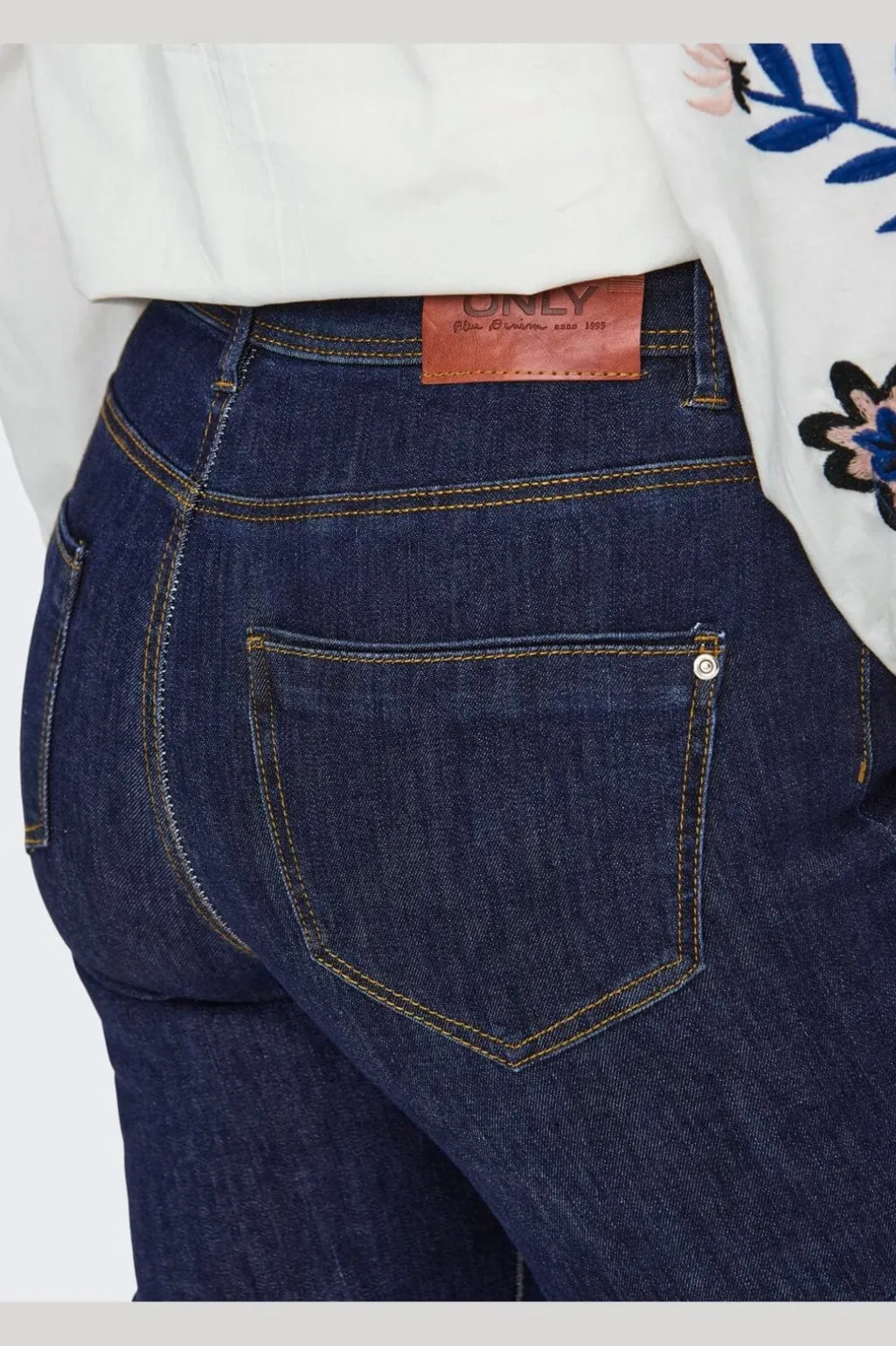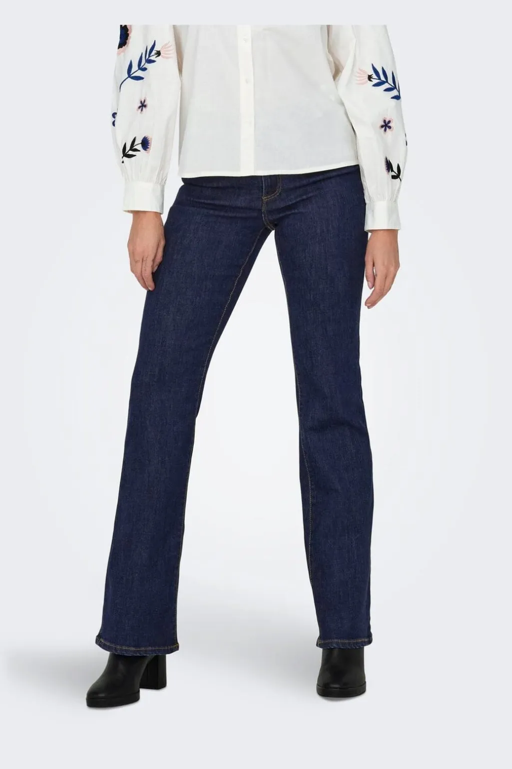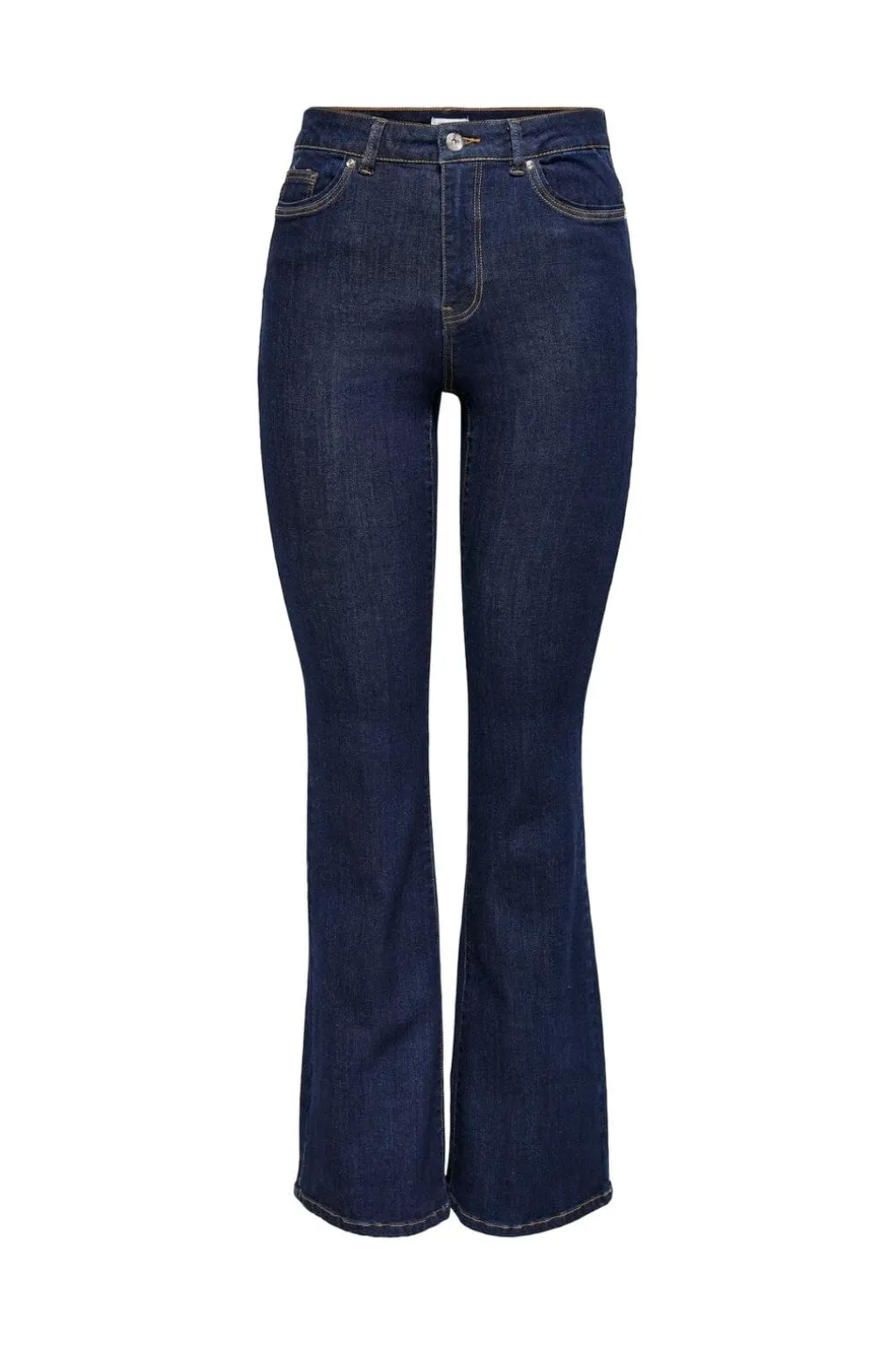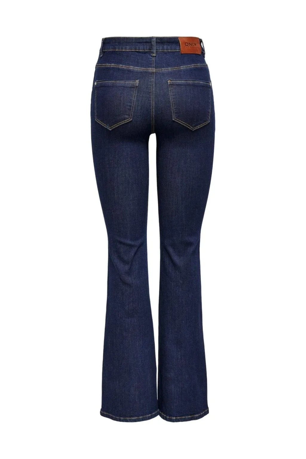 Flared jeans fra Only i mørkeblå denim. Pasformen sidder tæt omkring hofterne og udvider sig fra knæet.