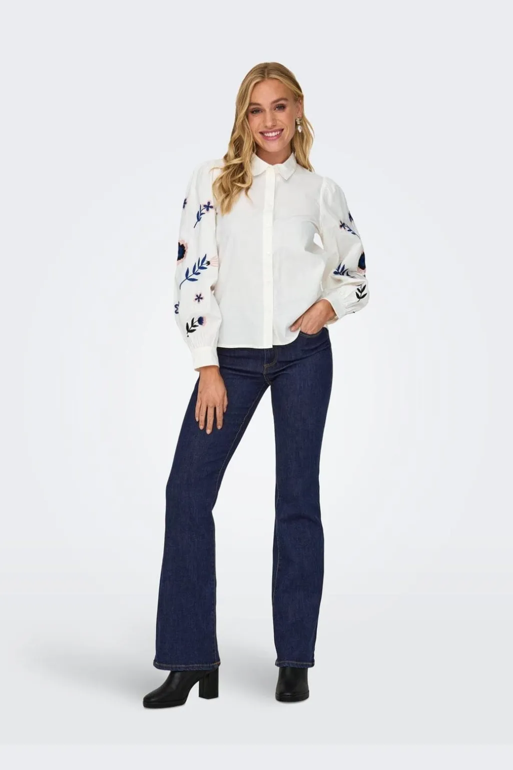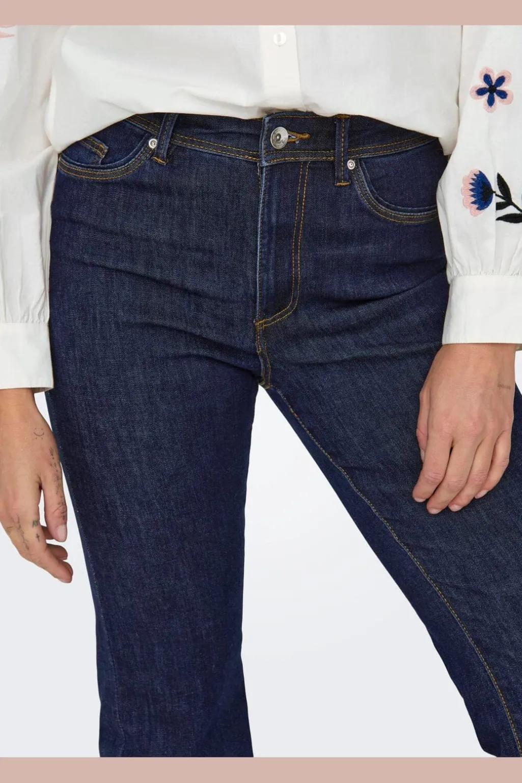 - Flared pasform med høj talje