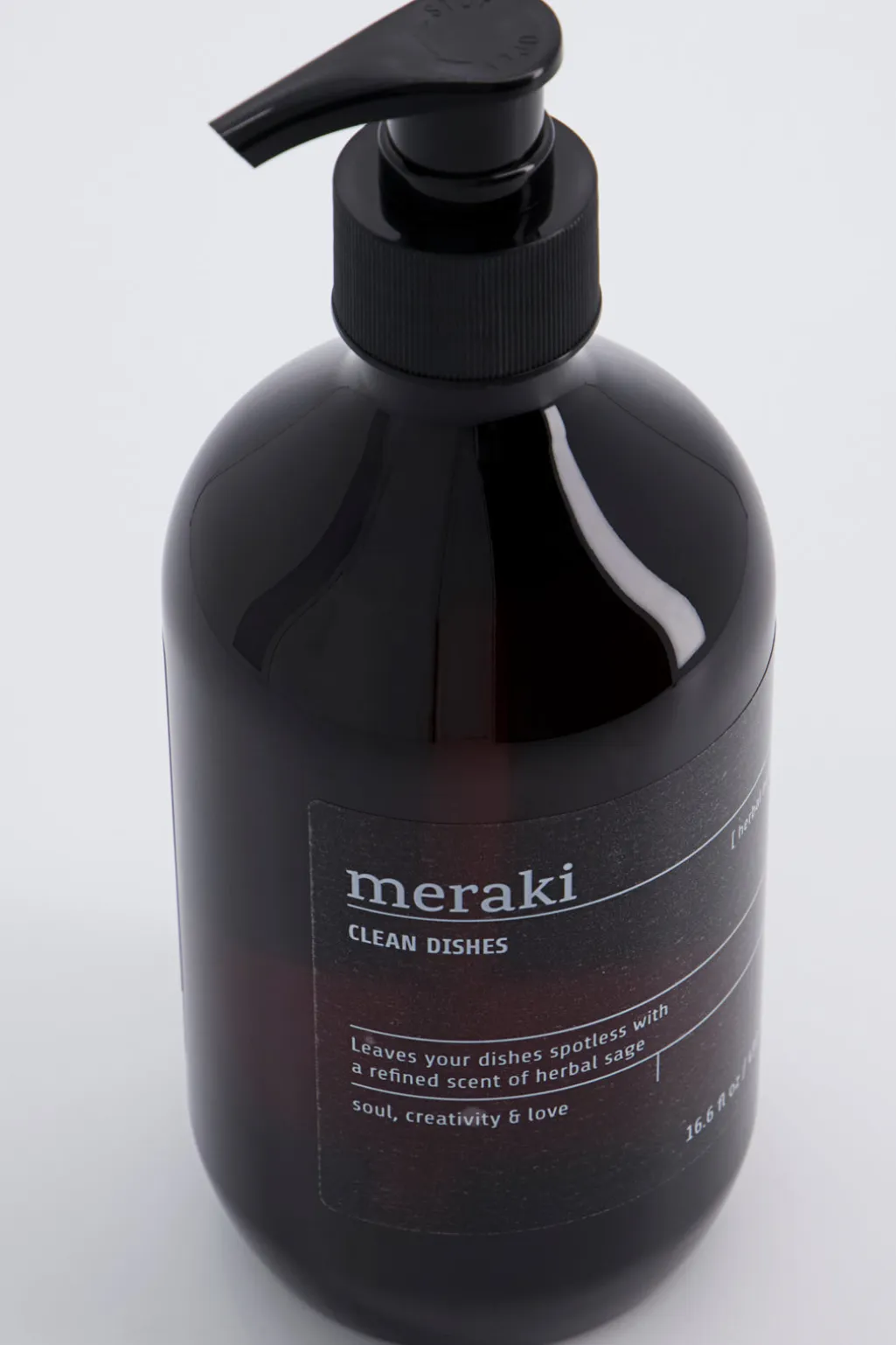 Dette opvaskemiddel fra Meraki hedder Herbal Nest og er Svanemærket. Du behøver kun ganske lidt, og med pumpedesignet er det nemt at få den rette dosering ud. Nyd den bløde skum og den lette duft med noter af salvie, citrus og musk. Design og funktionalitet smelter sammen i denne flaske, som du nemt kan have stående som dekoration ved køkkenvasken. Brug 2 ml sæbe til 5 liter vand. Opvaskemidlet må ikke bruges i opvaskemaskinen.