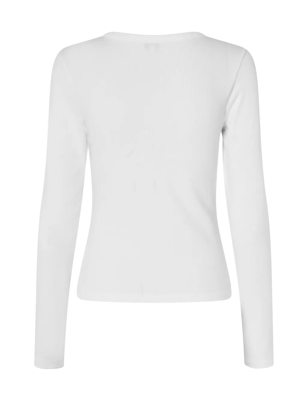 Hvid langærmet bluse fra MbyM med rund halsudskæring. Lavet af økologisk bomuld med stretch, der giver god bevægelsesfrihed og komfort.