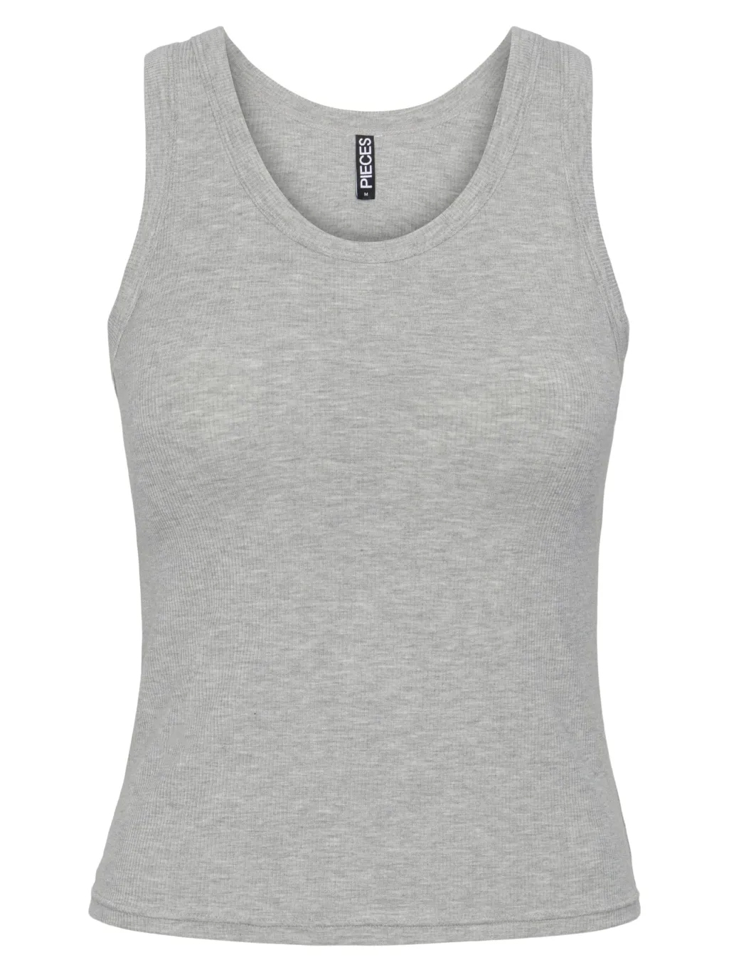 Lysegrå bra-top fra Pieces med tætsiddende pasform. Den ærmeløse top har en rund halsudskæring og er lavet i et strækbart materiale, der giver god bevægelsesfrihed.