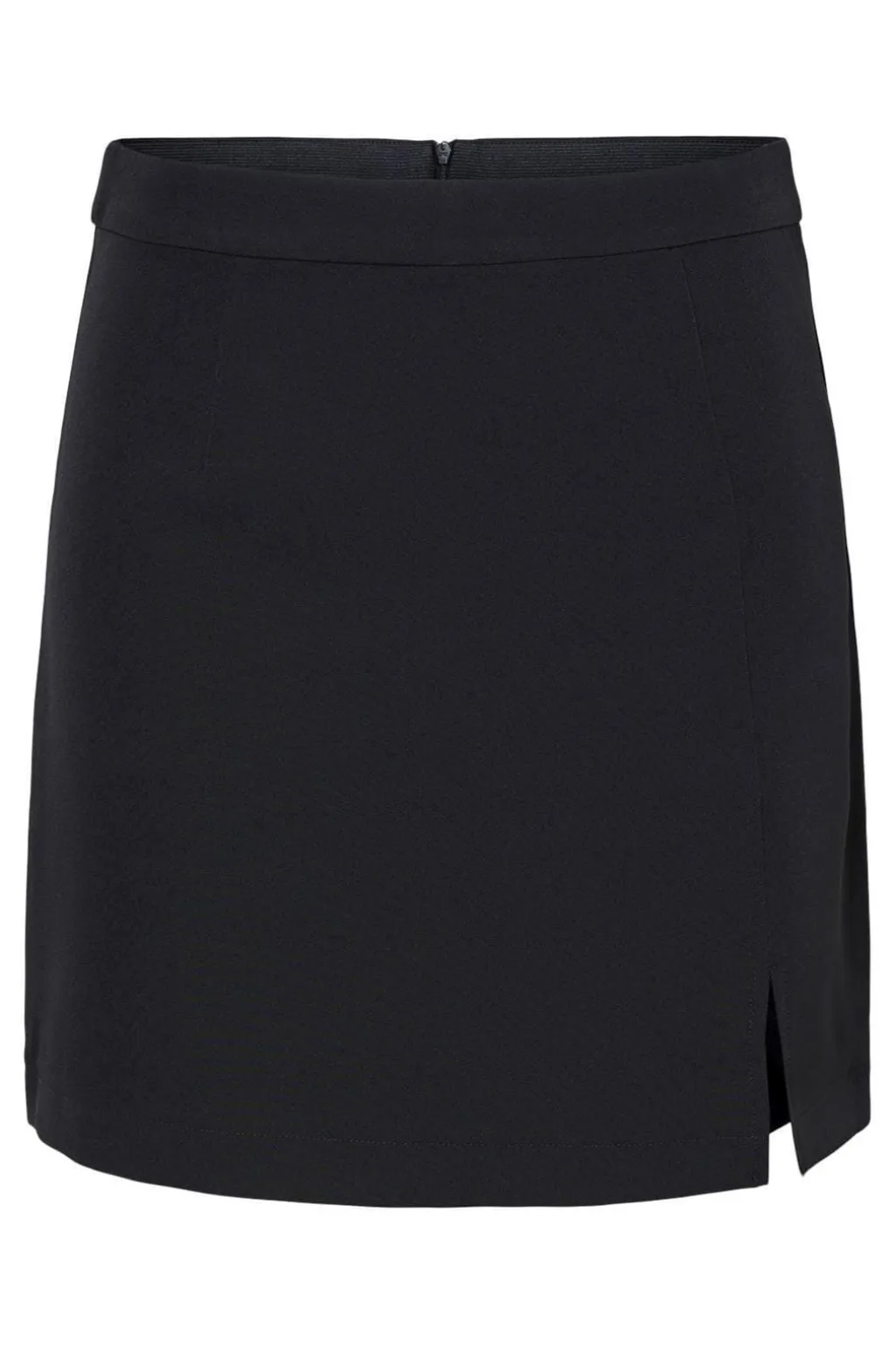 Sort nederdel fra Pieces med slids i højre side. Den korte længde og det enkle design gør den nem at style til forskellige anledninger.