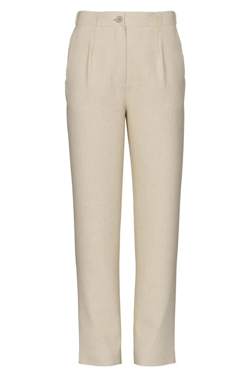 Ankelbukser fra Pieces i sandfarvet nuance med bred benvidde. Bukserne har en løs pasform og elastisk talje, der giver god bevægelighed i løbet af dagen.
