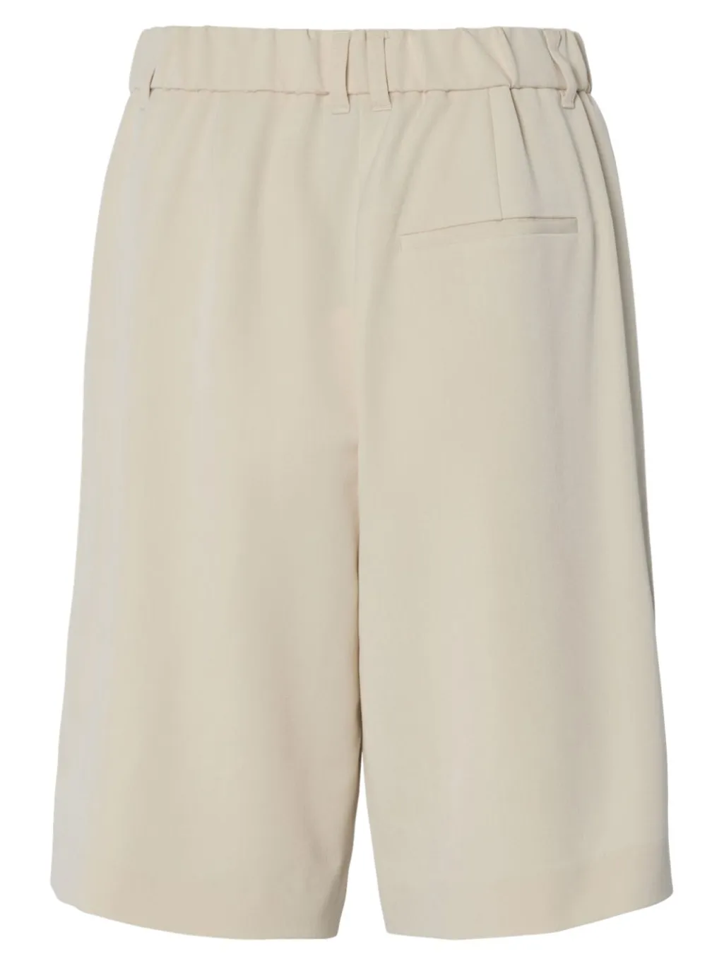 Shorts fra Pieces i en lys beige nuance med silkelignende overflade. De har høj talje og knælængde med krogknap og lynlås som lukning.